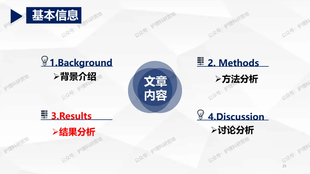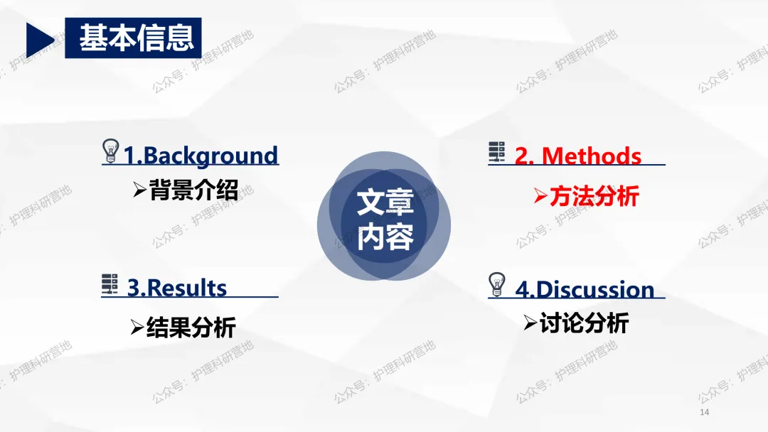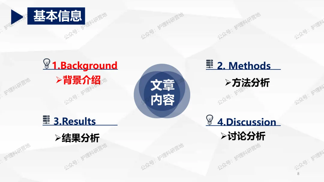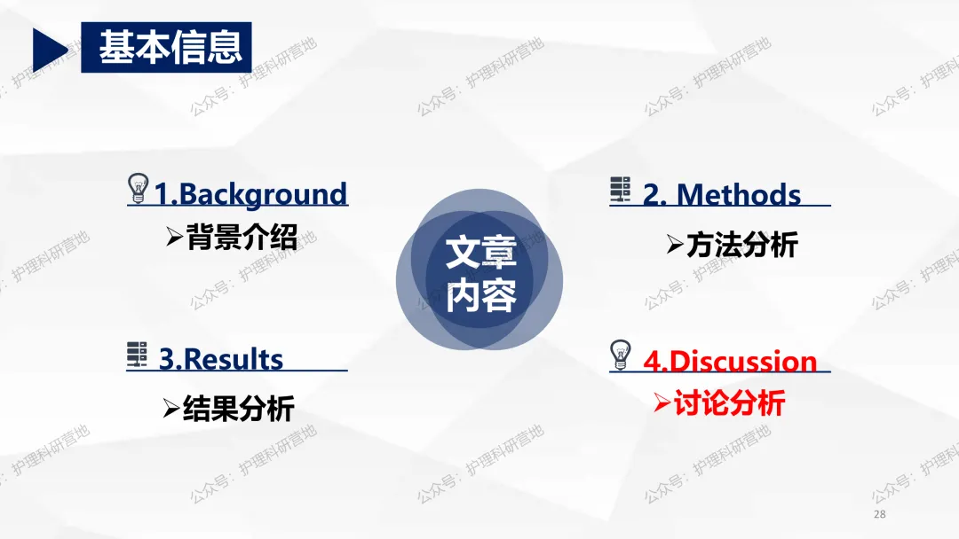 主要从文章的背景、方法、结果、讨论这四个部分分析