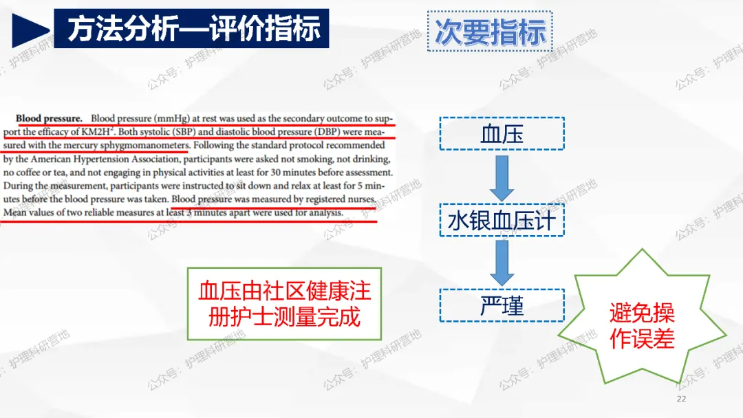 次要结局指标是血压,血压由社区执业护士用水银血压计测量完成,操作严谨,能够避免操作误差。