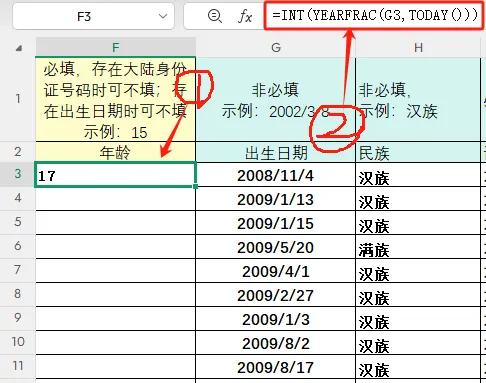选中该表格,输入:“=INT(YEARFRAC(G3,TODAY()))”,点击“enter”