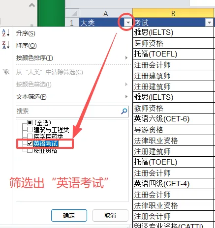 筛选出“英语考试”的数据