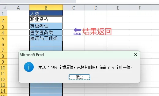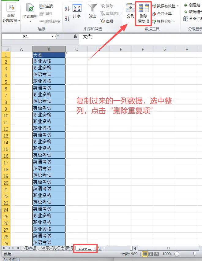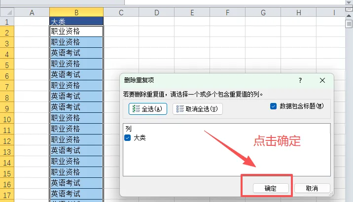 复制出“大类”列的数据,删除重复项