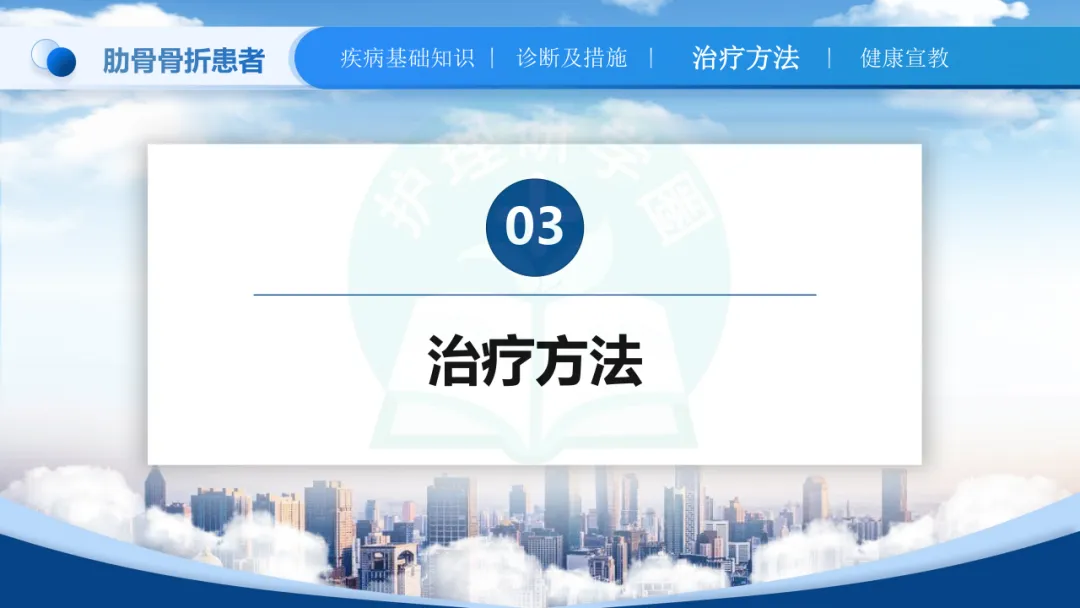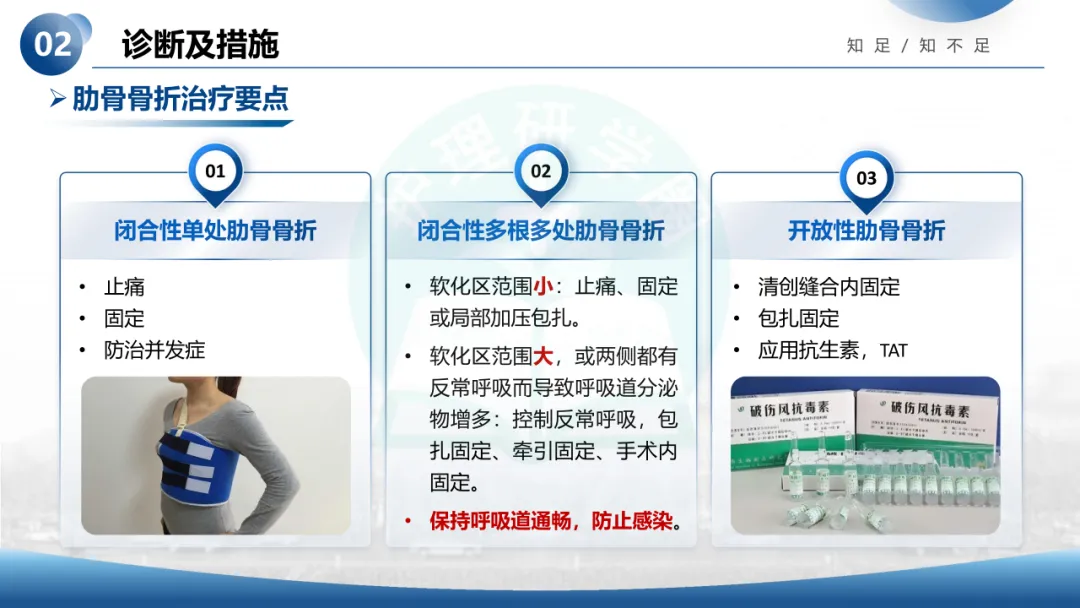 治疗总原则:有效镇痛、保持呼吸道通畅、固定胸廓、防治并发症、早期康复。