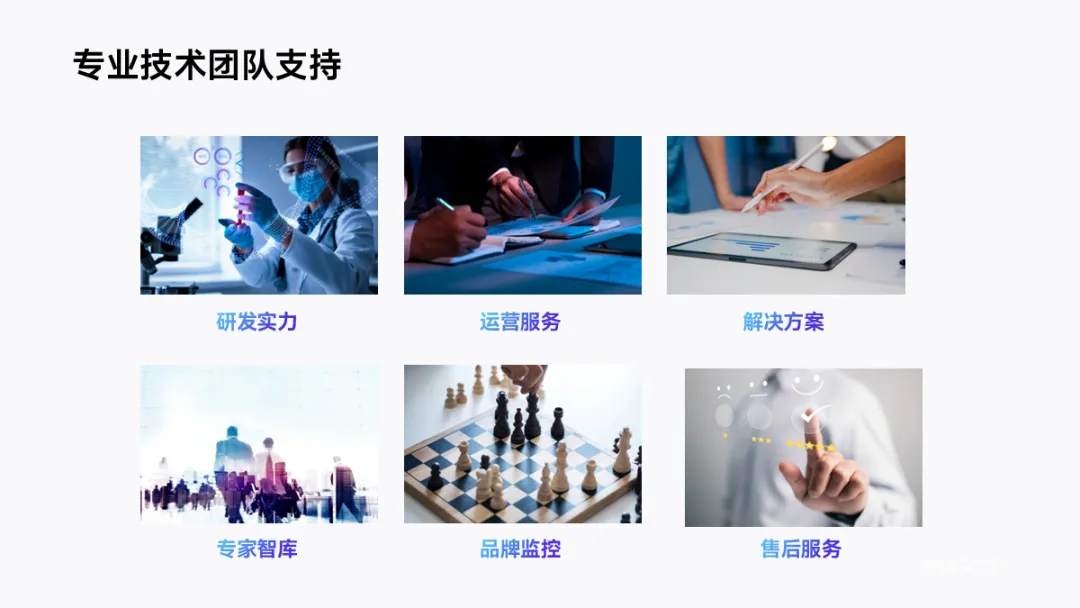 除了用三角形拼接,还可以用拆分的形式来排版,比如这页多图内容页,并列排开的话,显得中规中矩: