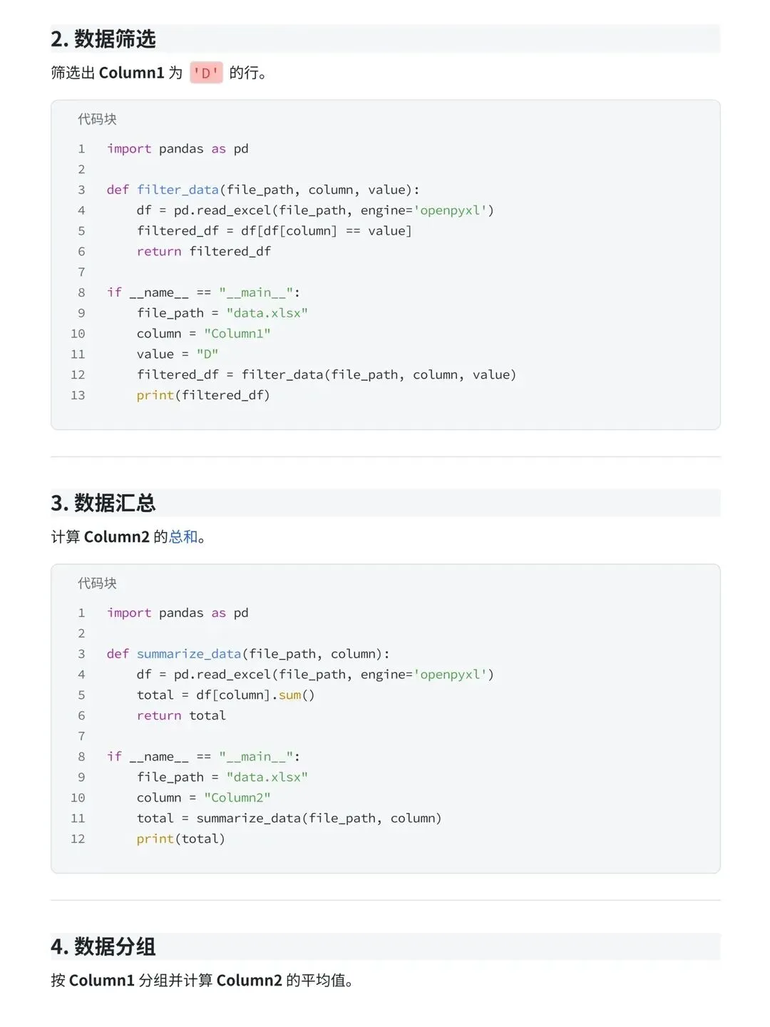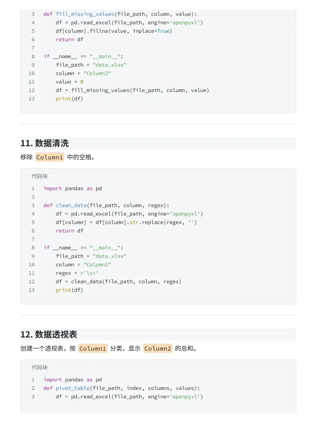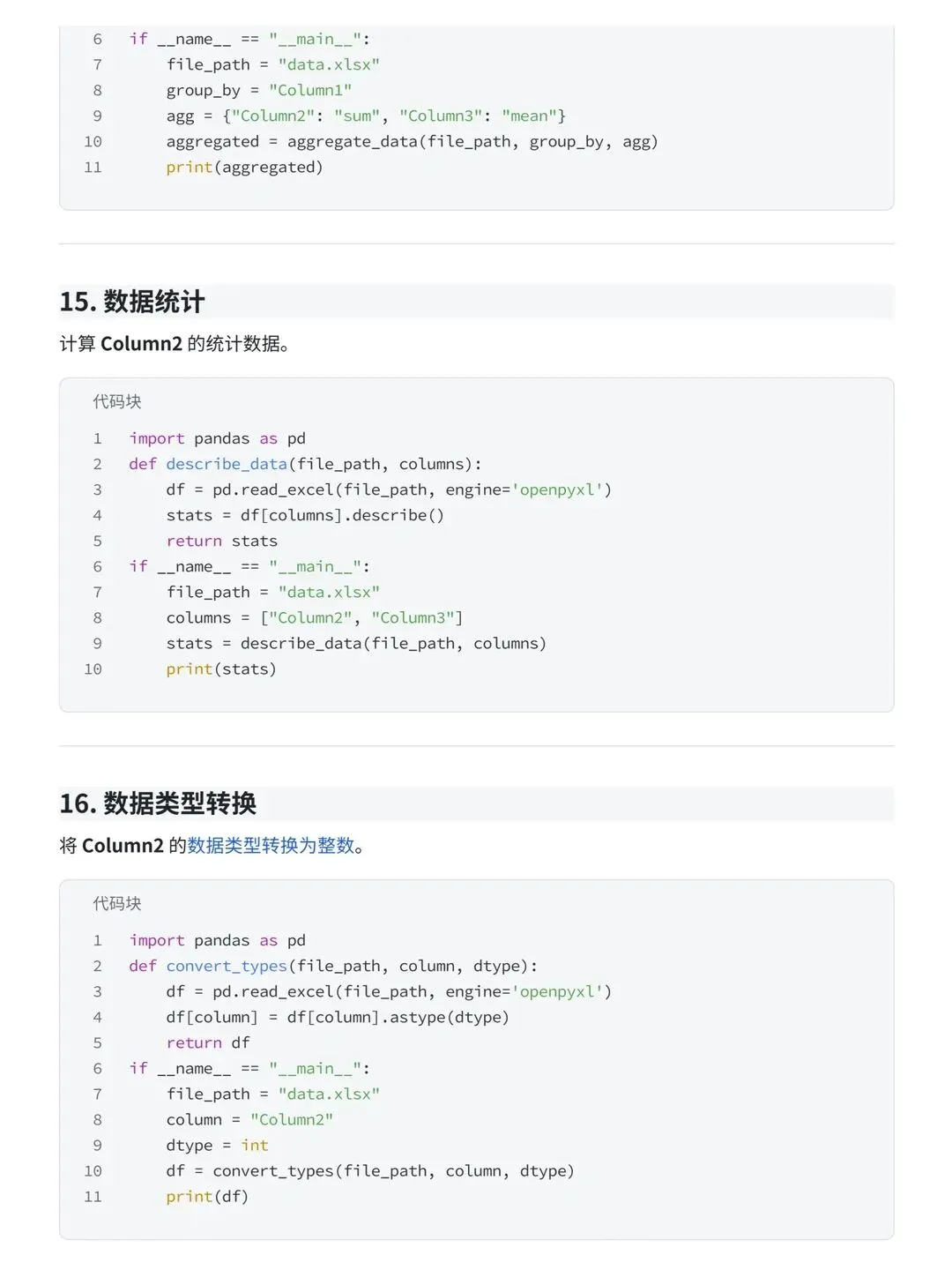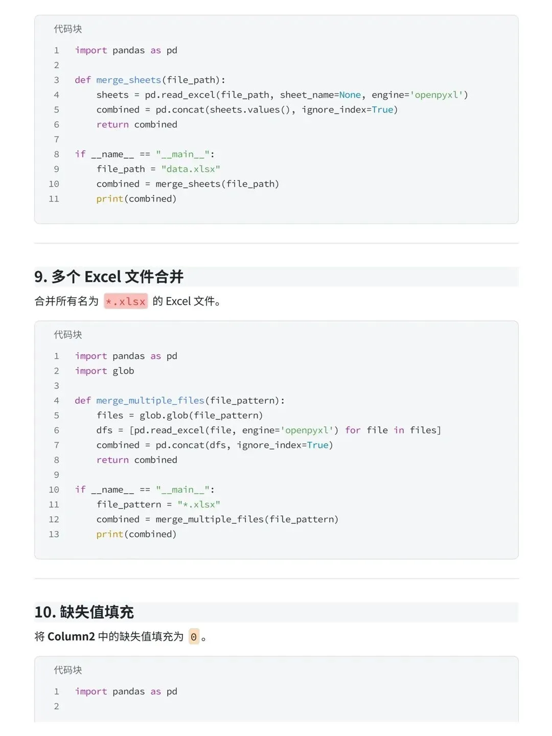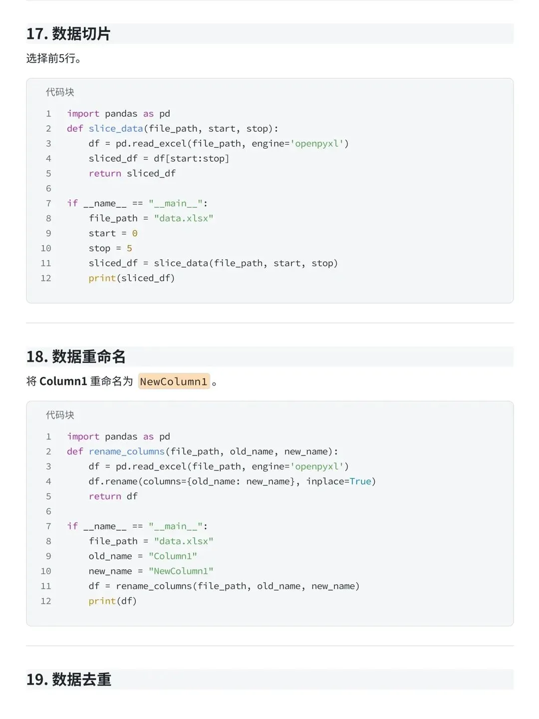20 个 Python 常用 Excel 数据处理脚本,涵盖表格读写、合并拆分、去重清洗、数据匹配、批量制表,办公自动化、报表生成直接套用,大幅提升做表效率。