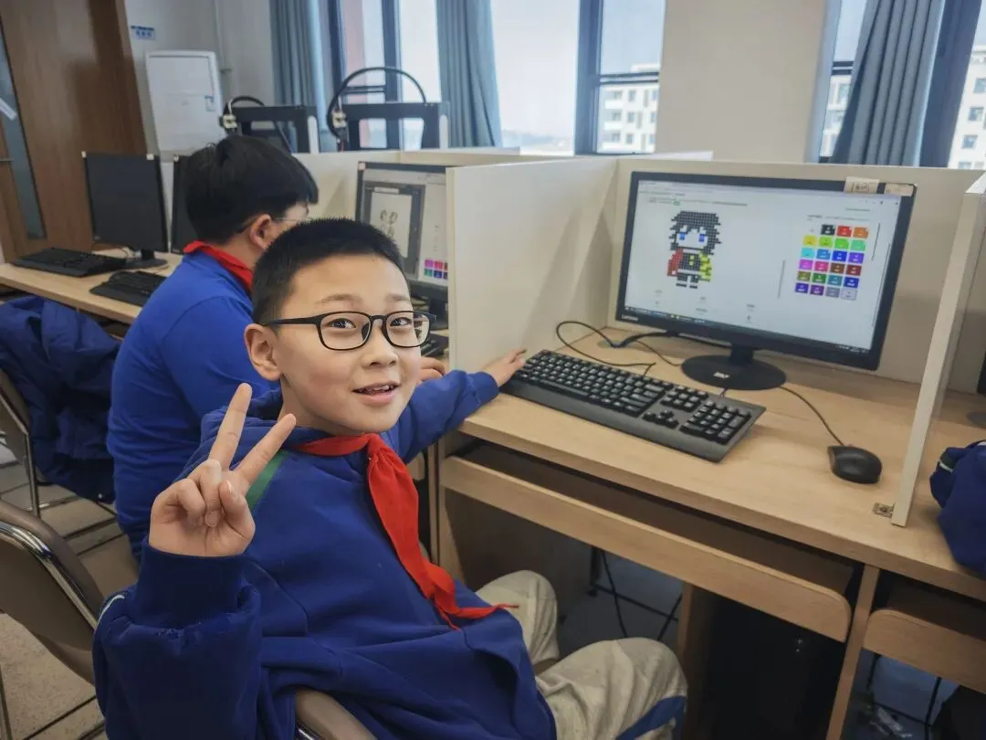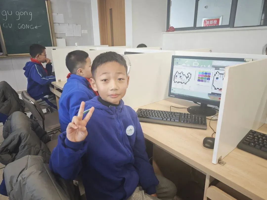 学生可以用不同颜色在方格板上创作各种图案,就像最近比较流行的拼豆一样。他们特别喜欢利用课堂多余的时间进行创作。