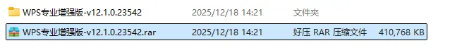 1.下载解压(WPS专业增强版-v12.1.0.23542)压缩包