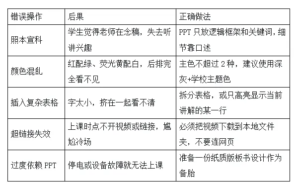 不要追求酷炫,要追求清晰。教室后排的学生必须能看清。