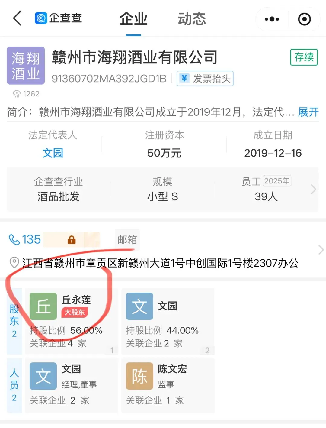 此外,赣州拾友之光商贸公司大股东陈文宏还是丘友莲控股的海翔酒业的监事。