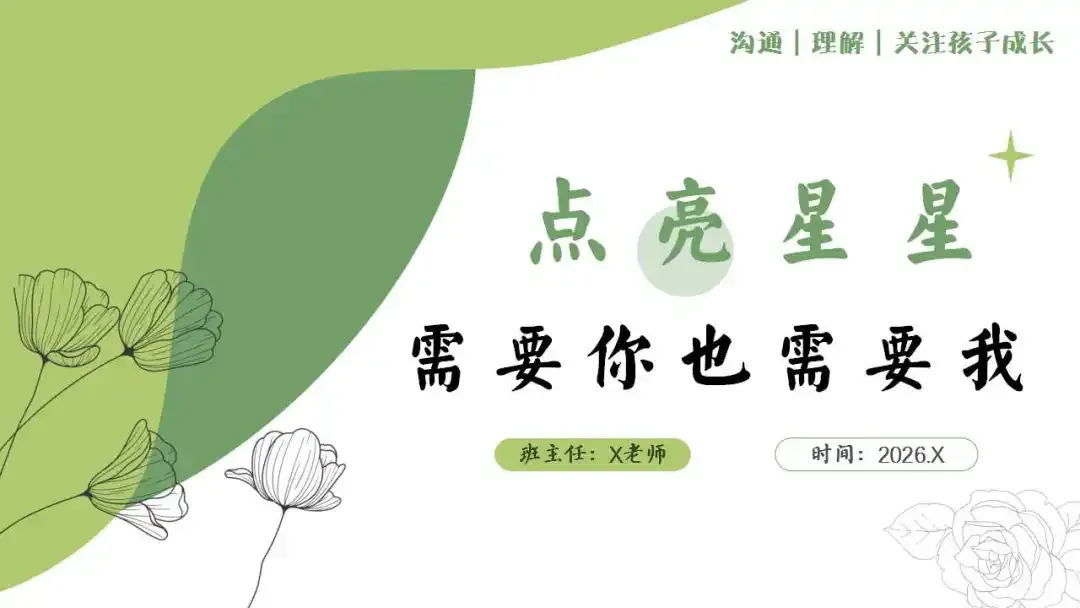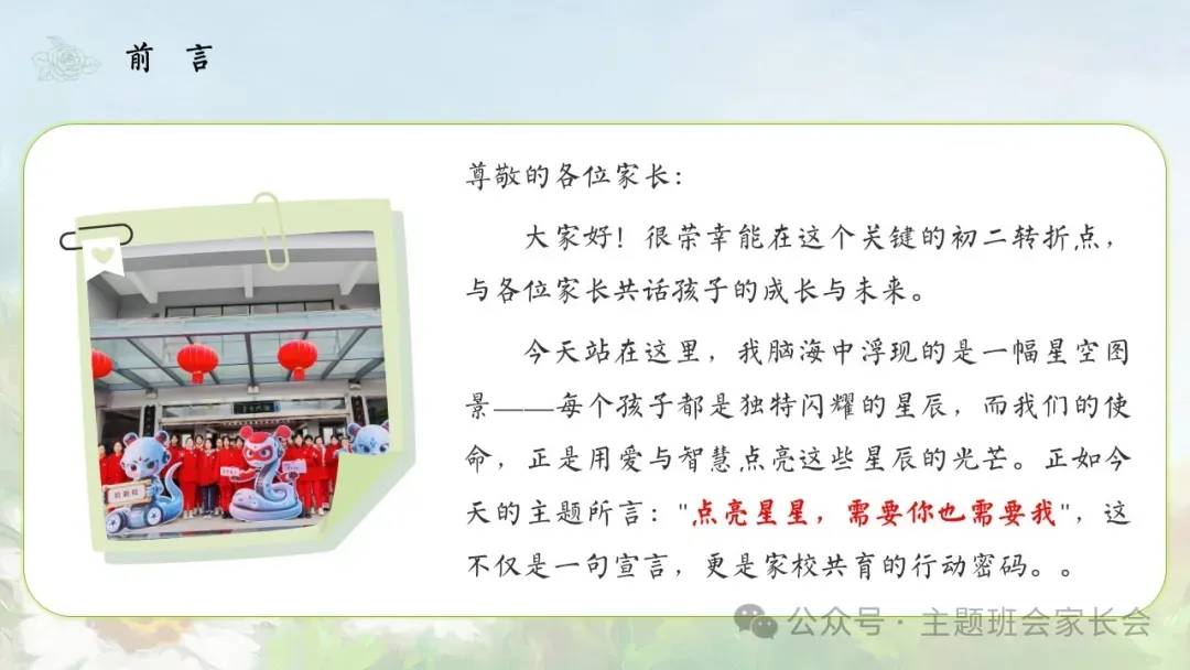 初二(八年级)下期中家长会ppt:点亮星星,需要你也需要我.含发言稿