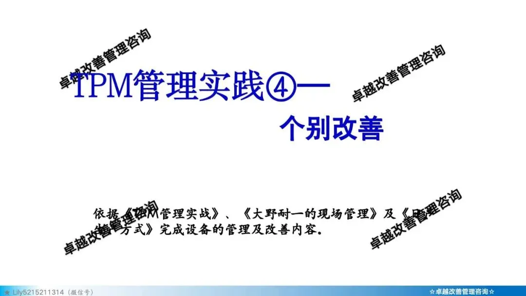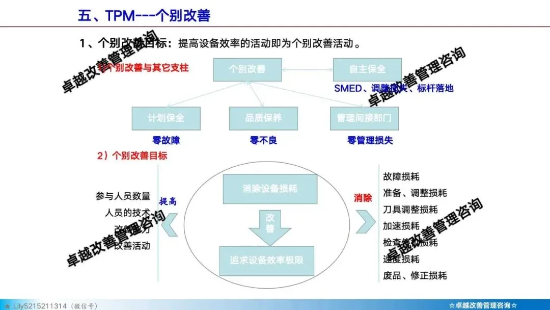个别改善(Kobetsu Kaizen / Focused Improvement)是 TPM 八大支柱之一,也常被称作焦点改善、重点改善、课题改善。