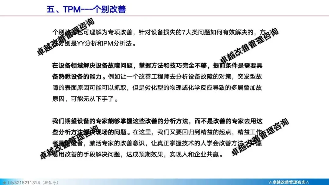 核心是:针对瓶颈设备、重大损失、顽固问题,成立专项小组,用科学方法彻底解决,实现零损失、高收益。