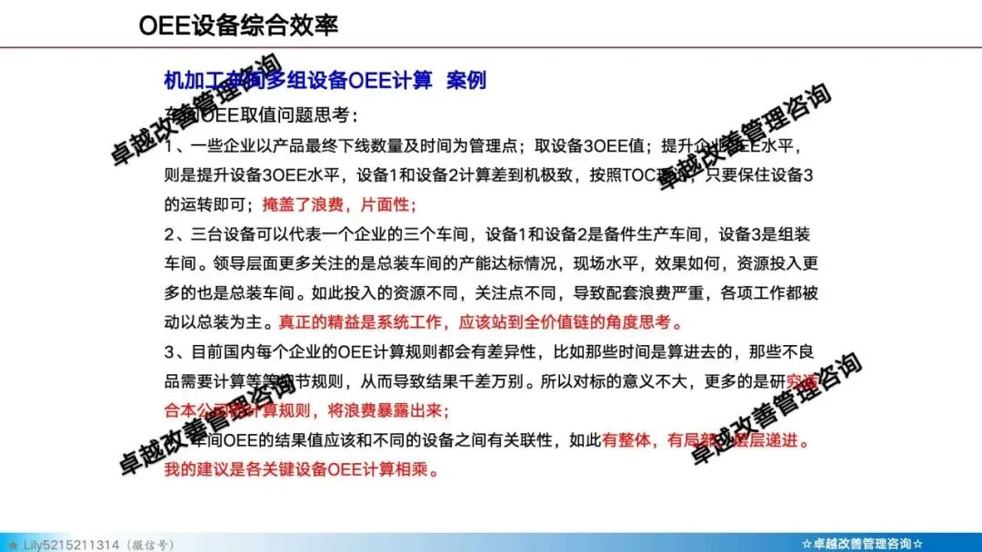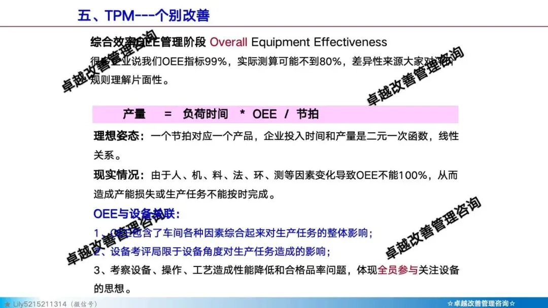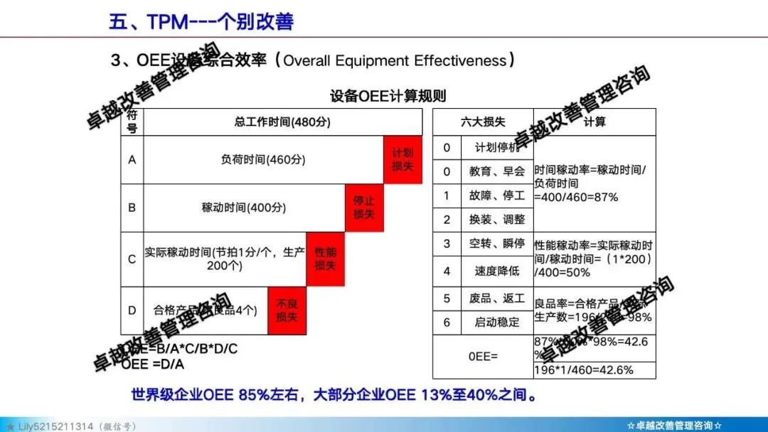 最终实现 OEE 最大化、成本最低化、效益最大化。