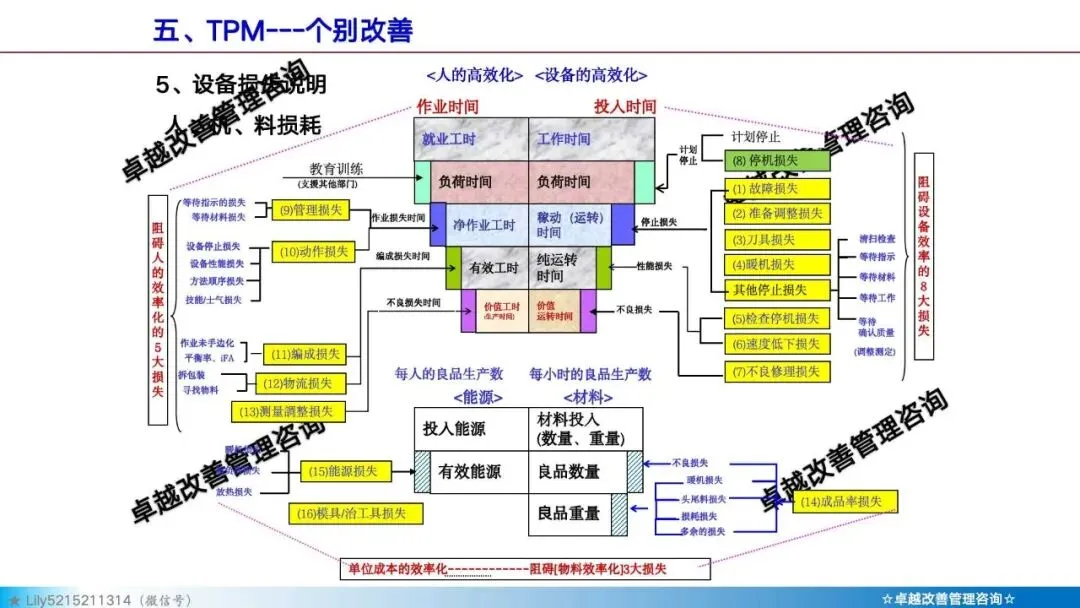以消除设备 16 大损失为目标,由跨部门小组(生产、设备、工艺、质量等)针对特定课题,运用分析工具,有计划、有步骤地开展持续改善,最终实现效率最大化。