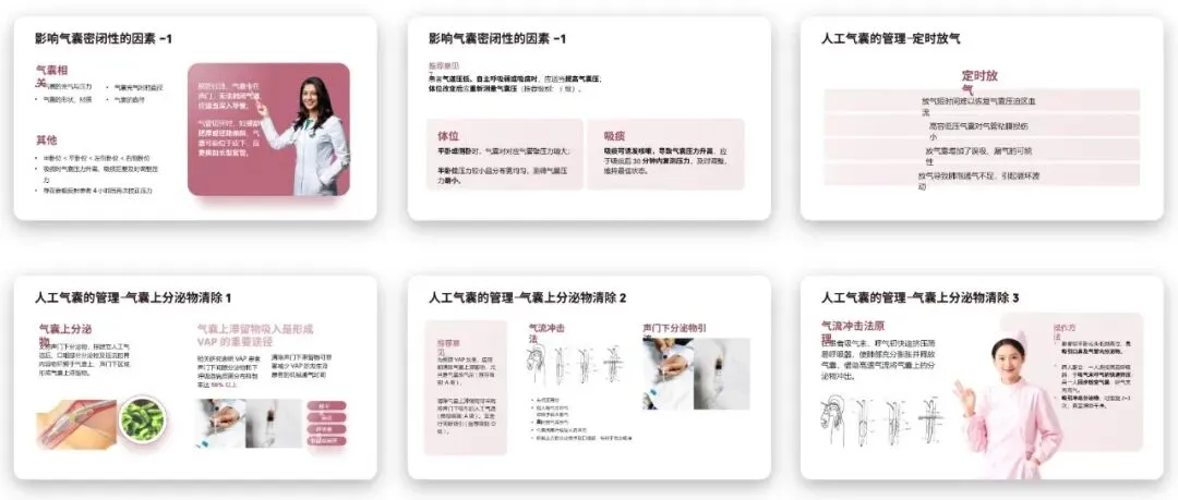 人工气道气囊的管理PPT中,对专家共识推荐要点的解读,完全贴合医护人员的规范培训需求,能够帮助其严格遵循共识要求,规范开展气囊上滞留物清除操作,提升VAP防控的效果。