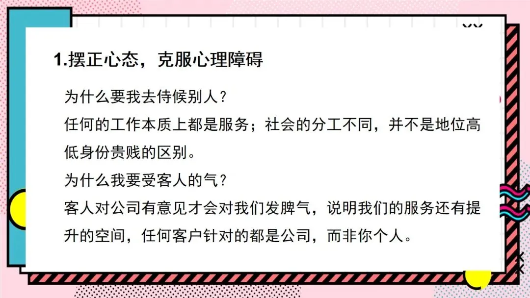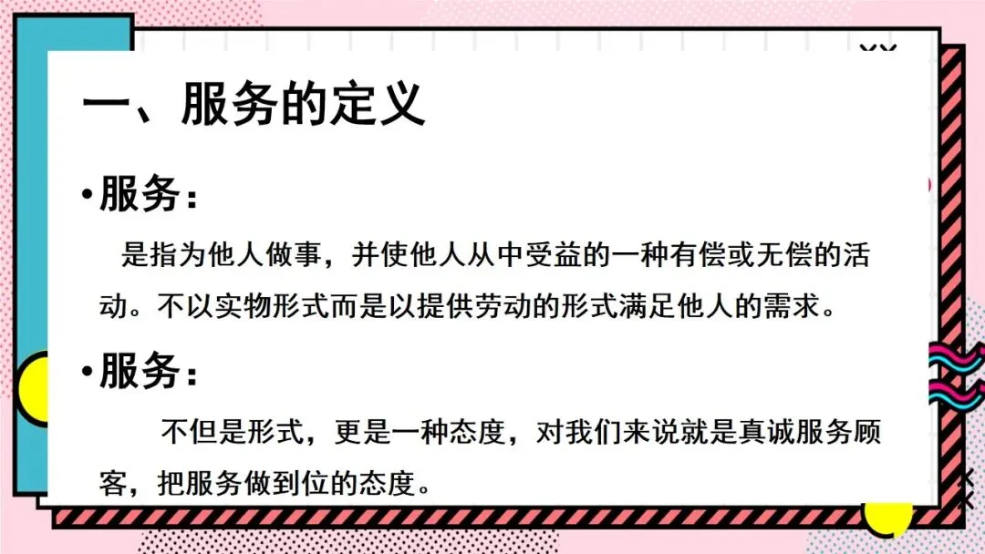 不但是形式,更是一种态度,对我们来说就是真诚服务顾客,把服务做到位的态度。