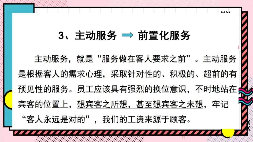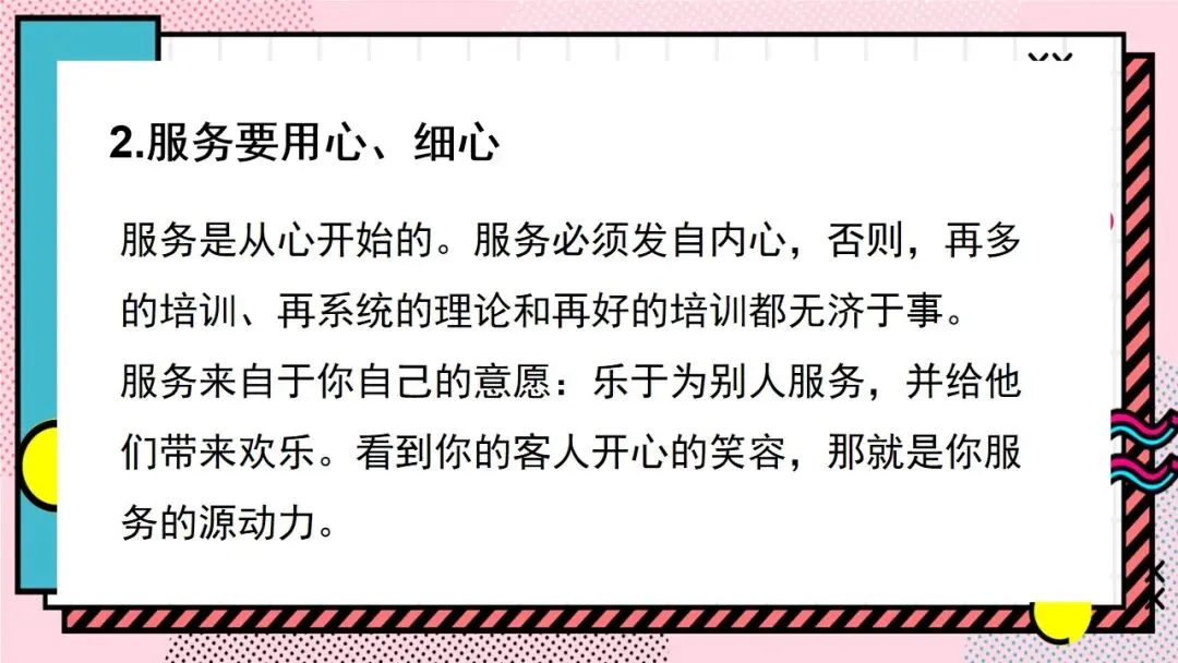 2.它是发自服务人员内心的,是服务人员主动做好服务工作的一种观念和习惯。