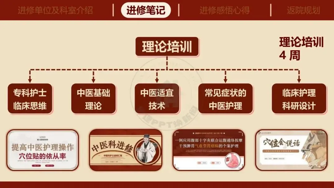 进行了4周系统理论学习培训分为5种,包括中医基础和专科护理知识。