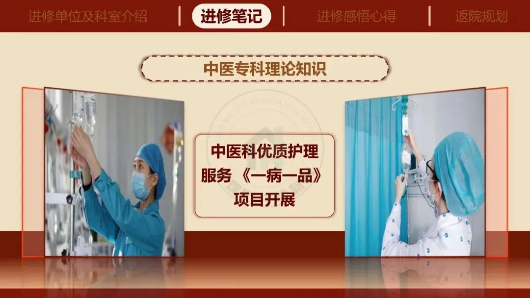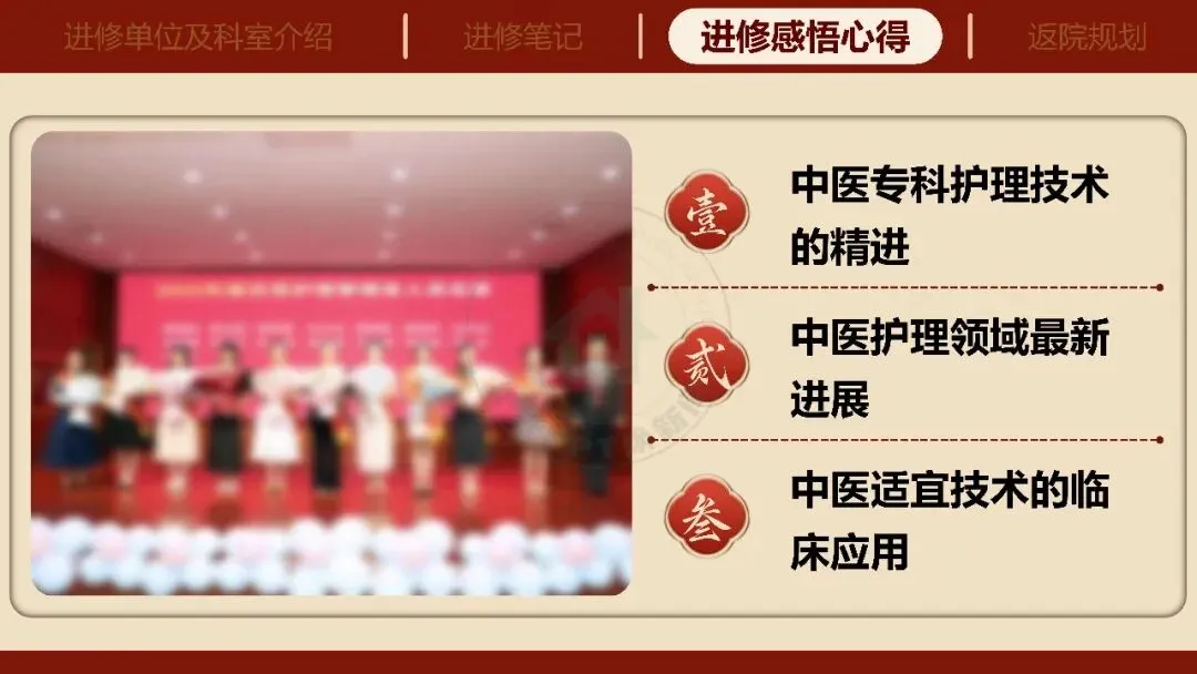 我在进修中提升了中医护理技能,了解了最新进展,掌握了临床应用。