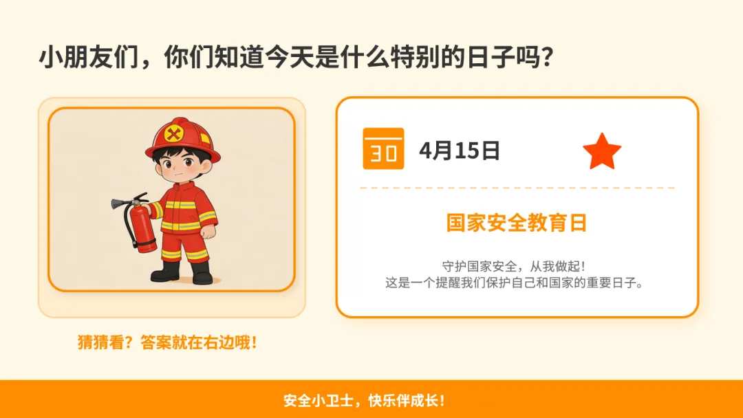 - 播放 PPT,出示4 月 15 日・国家安全教育日,引导幼儿认读。