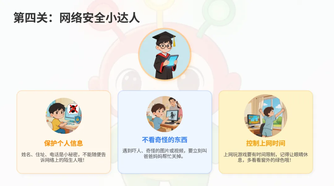 (二)闯关学习:四大安全小课堂(20 分钟)