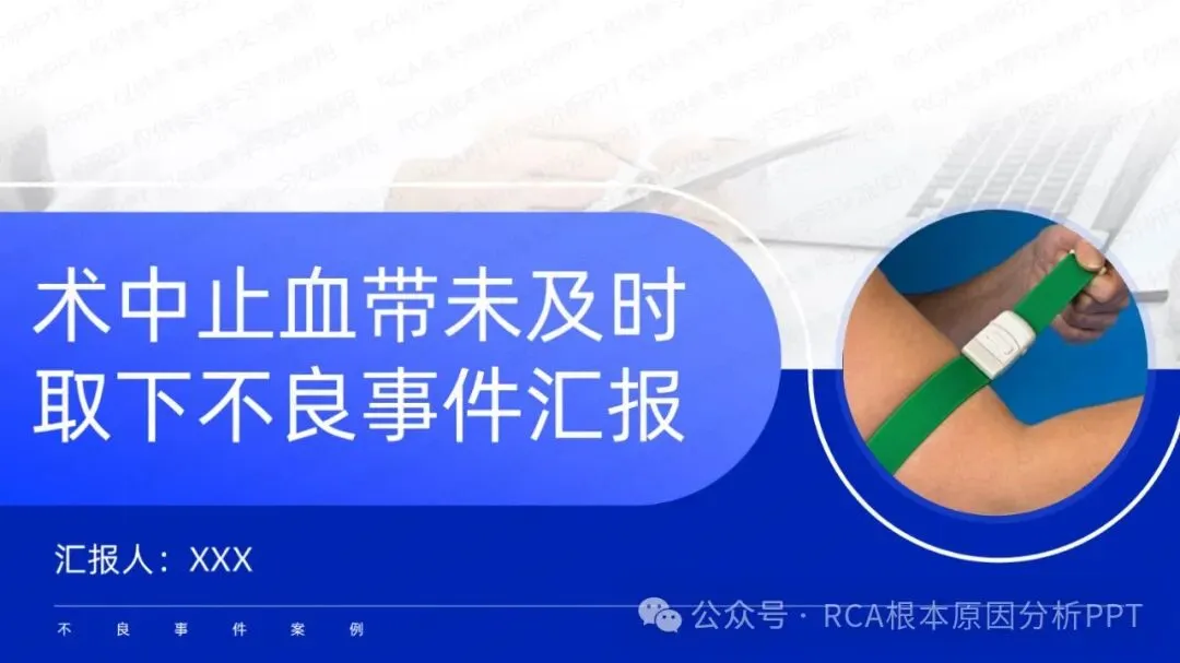在临床工作中,任何一个细微环节的疏忽都可能引发严重后果,关乎患者的健康与安全。近期,发生了一起术中止血带未及时取下的不良事件,这一事件为我们敲响了警钟,也促使我们对整个操作流程和管理机制进行深入反思。接下来,将从事件经过、原因分析、整改措施以及总结思考四个方面,对此次事件展开全面且详细的汇报,旨在剖析问题根源,制定有效整改策略,避免类似事件再次发生。