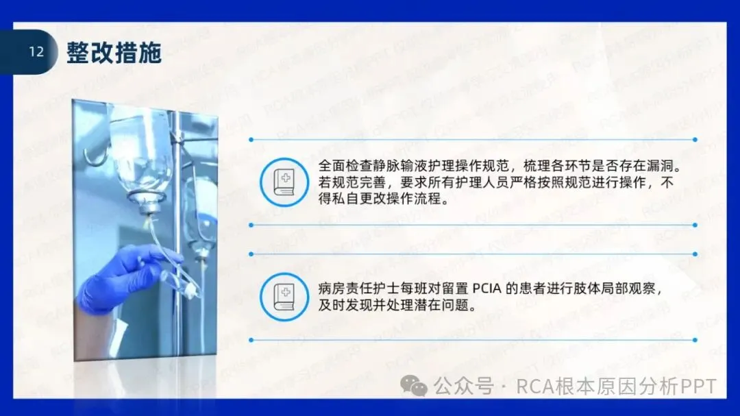 全面检查静脉输液护理操作规范,梳理各环节是否存在漏洞。若规范完善,要求所有护理人员严格按照规范进行操作,不得私自更改操作流程。