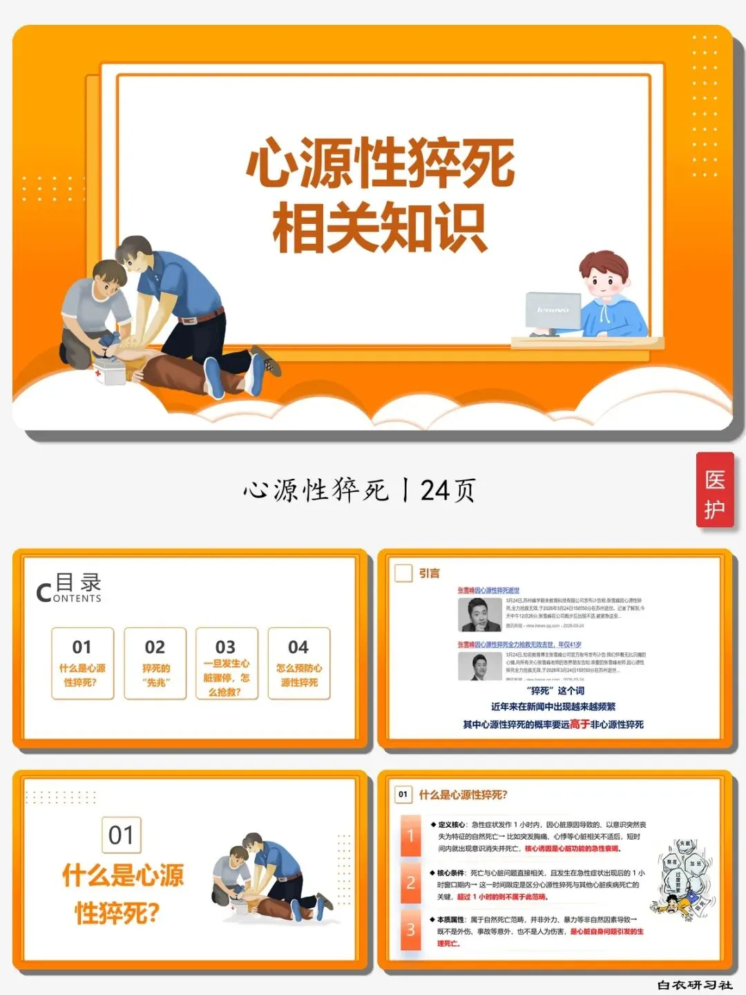 🍎内容:心源性猝死相关知识-医护PPT模版