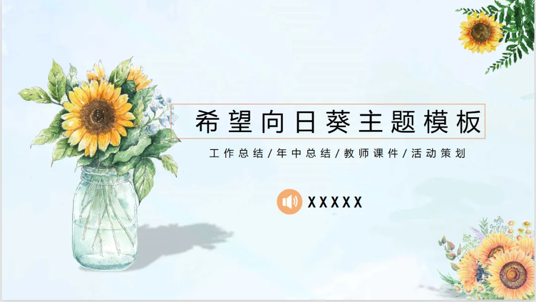 向日葵象征阳光、积极与成长,适配所有正向场景✨ 职场汇报用它,显得干练有活力,领导一眼有好感;毕业答辩用它,告别单调沉闷,加分又吸睛;说课、党建用它,贴合正向基调,庄重又不生硬;节日、班会用它,氛围感拉满,简单修改就能直接用。