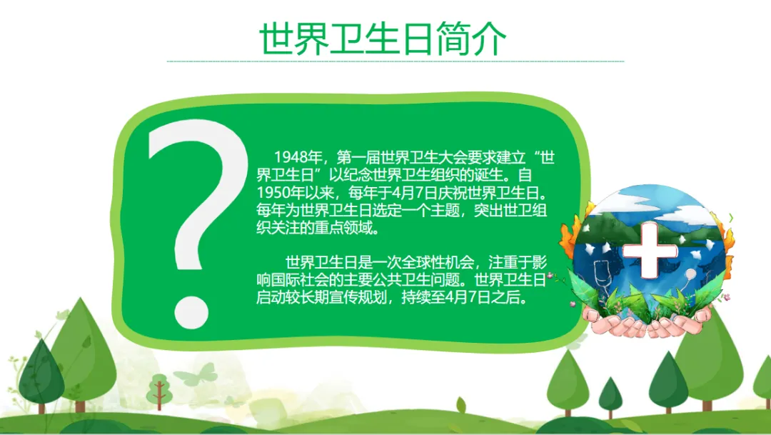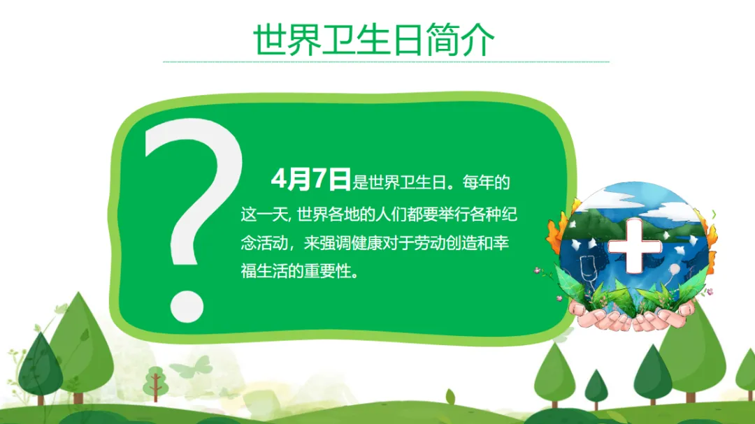 4月7日《世界卫生日主题教育班会ppt模板》电子版,可免费下载编辑