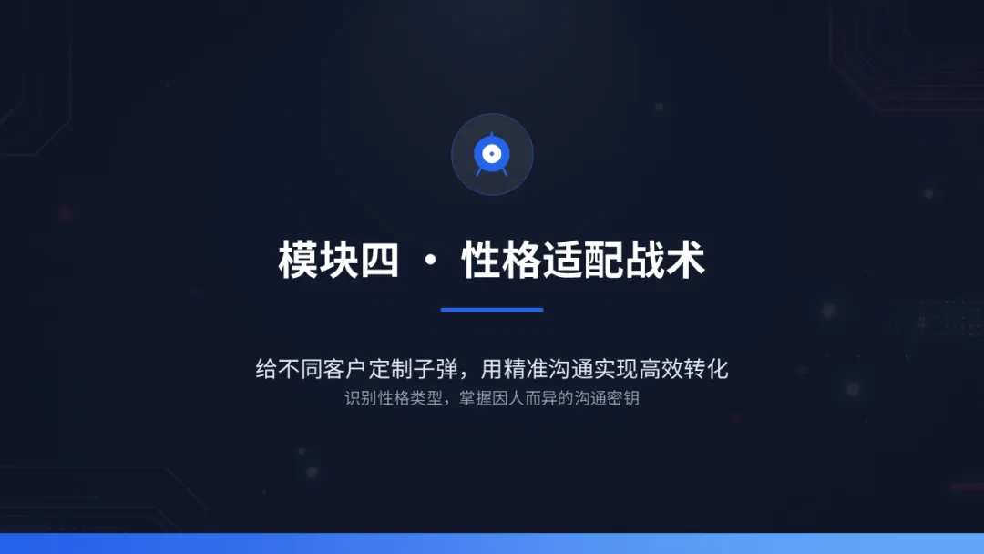 我们都知道,世界上没有两片完全相同的叶子,也没有两个完全相同的客户。不同性格的客户,沟通方式、关注点完全不同,用一套话术应对所有客户,注定会失败。所以,这一模块我们要学会识别客户的性格画像,给不同类型的客户定制攻心子弹,用精准沟通实现高效转化。
