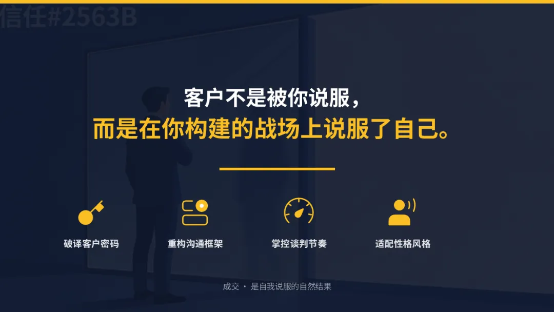 客户不是被你说服的,而是在你构建的战场上,自己说服了自己。你不需要强行推销,只需要读懂客户的真实需求,化解他的顾虑,引导他做出正确的决策,成交就会成为自然的结果。
