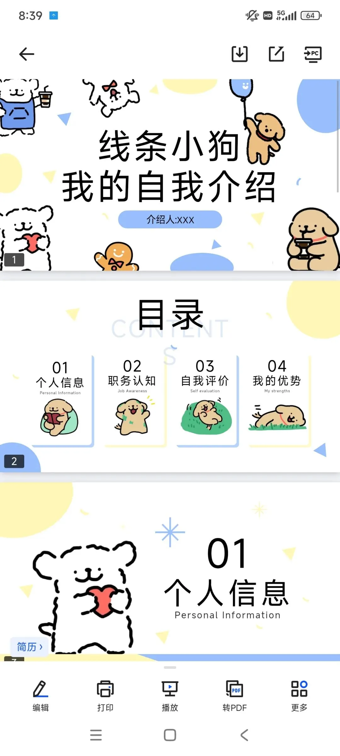 本文内容分享【线条小狗PPT模板】