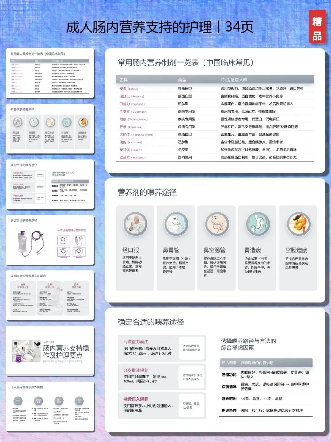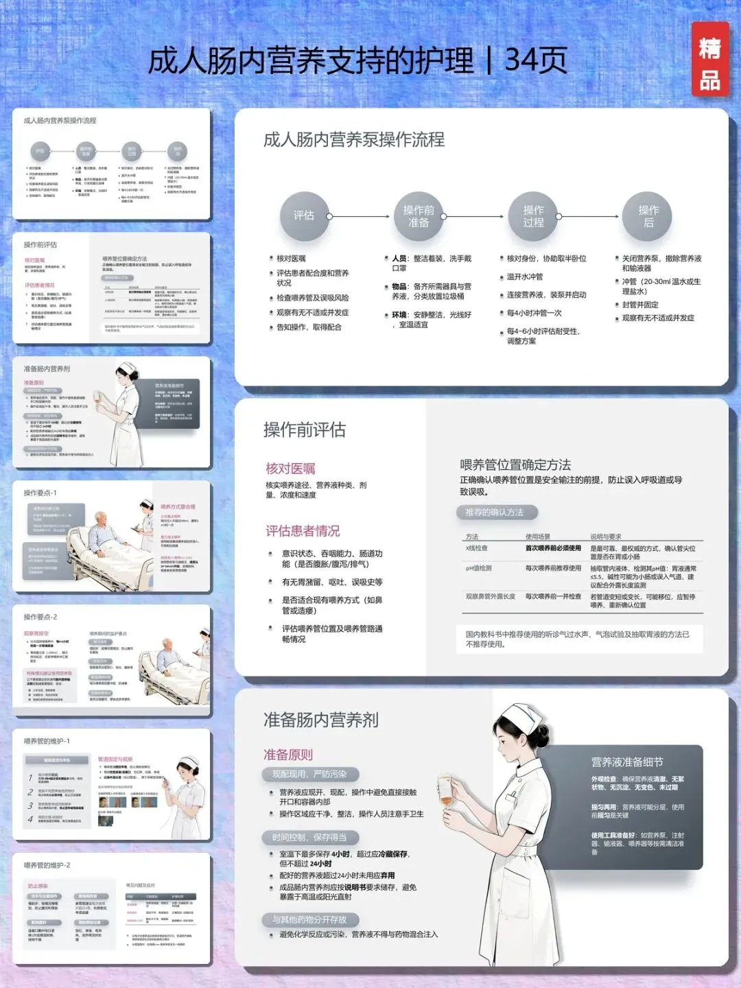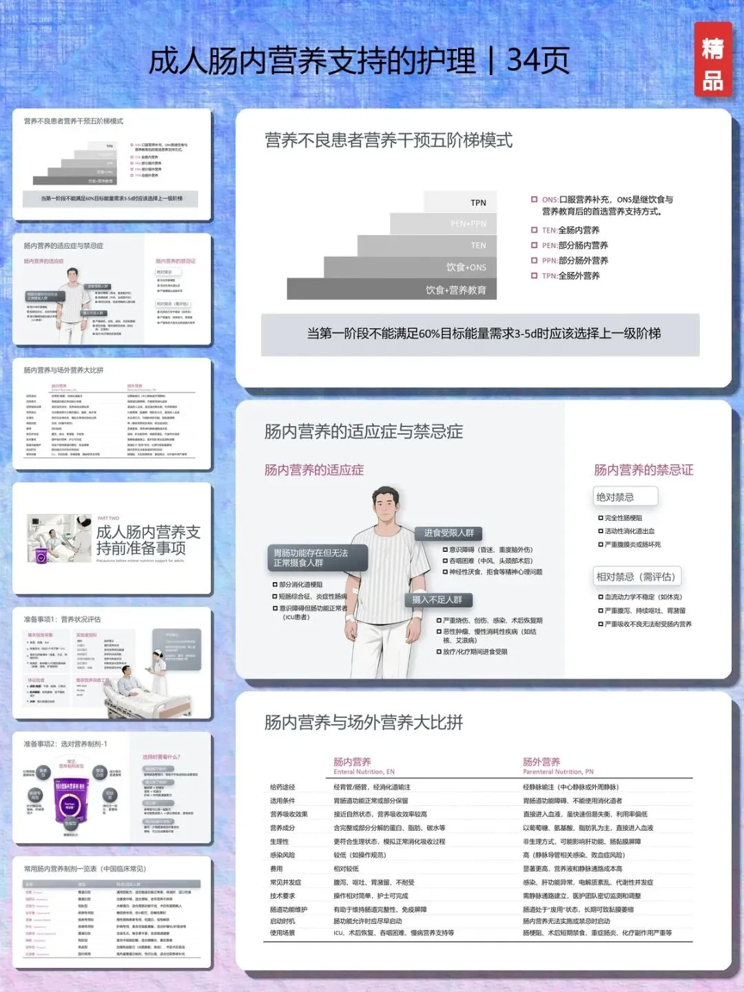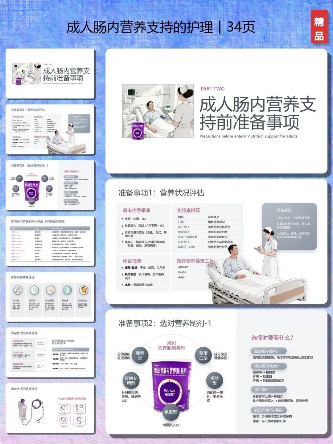 🍎内容:成人肠内营养支持的护理-医护PPT模版📅页数:共34页,无水印可二次编辑🌲目录:01 成人肠内营养支持概述02 成人肠内营养支持前准备事项03 肠内营养支持操作及护理要点04 并发症的护理要点