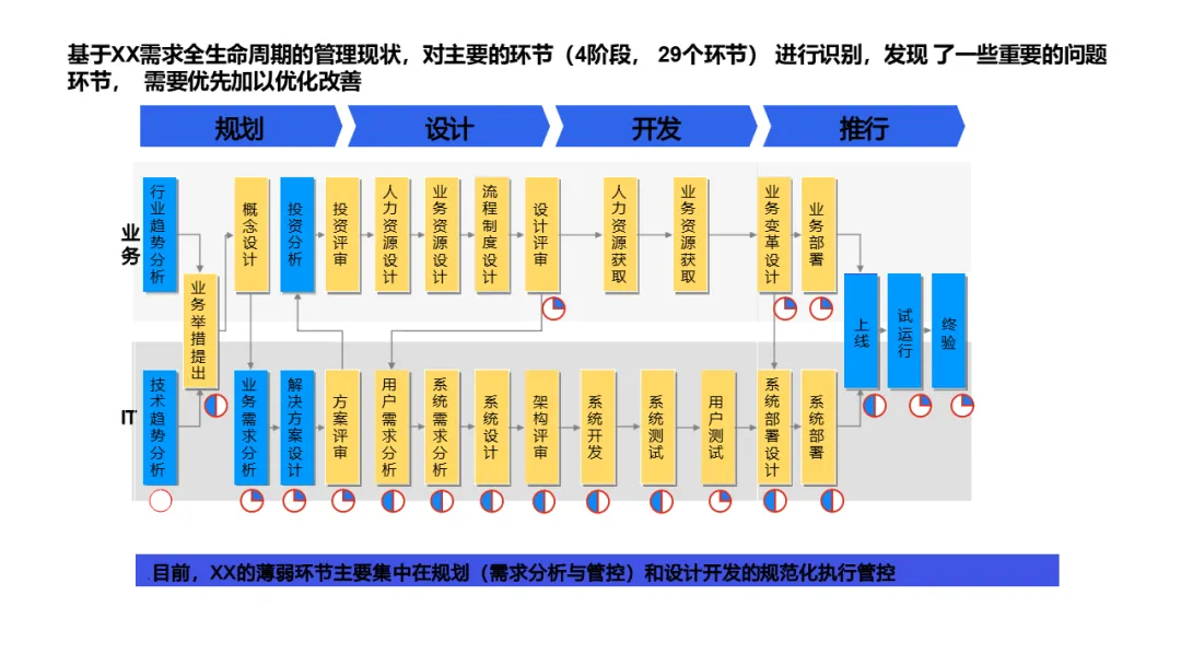绩效与工具:为BTIT团队及关联角色设计融合业务与IT视角的KPI,涵盖质量与时效指标。同时,优化或引入统一的需求管理平台,实现需求状态的精细化管理、流转监控和效能分析。