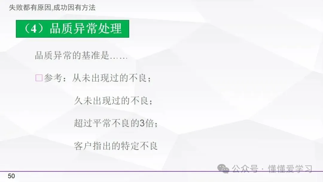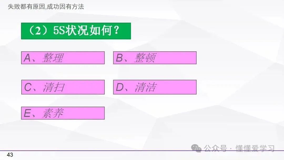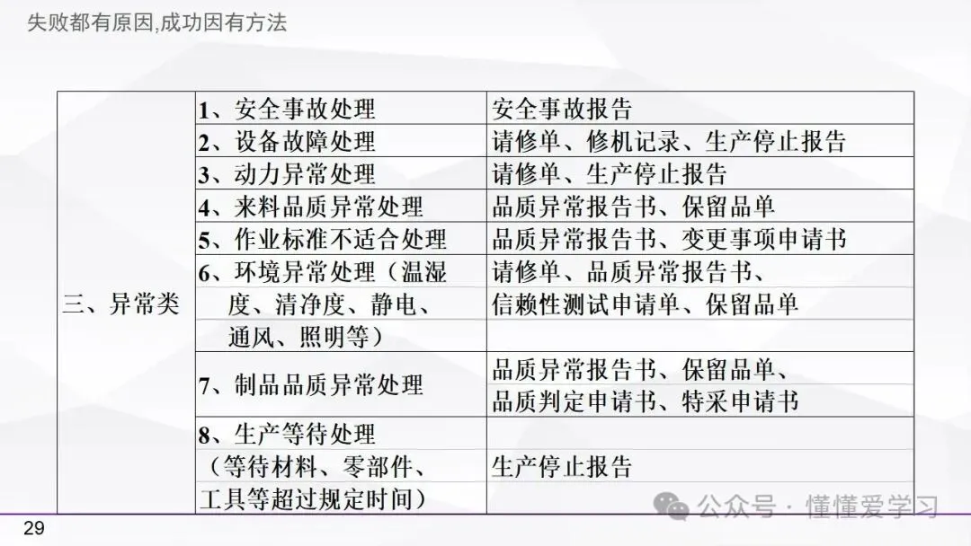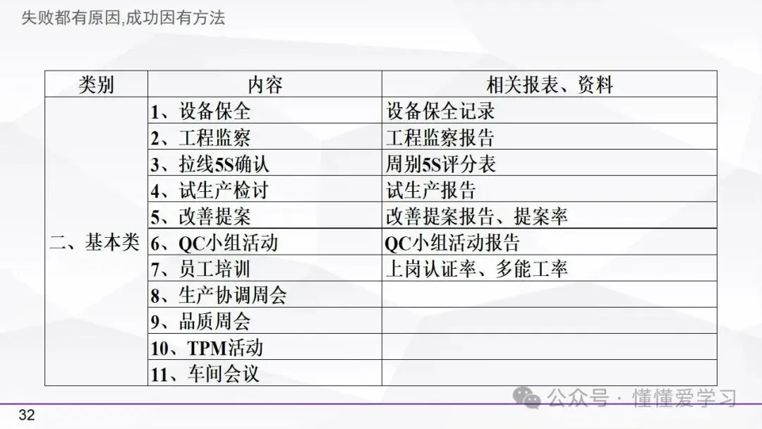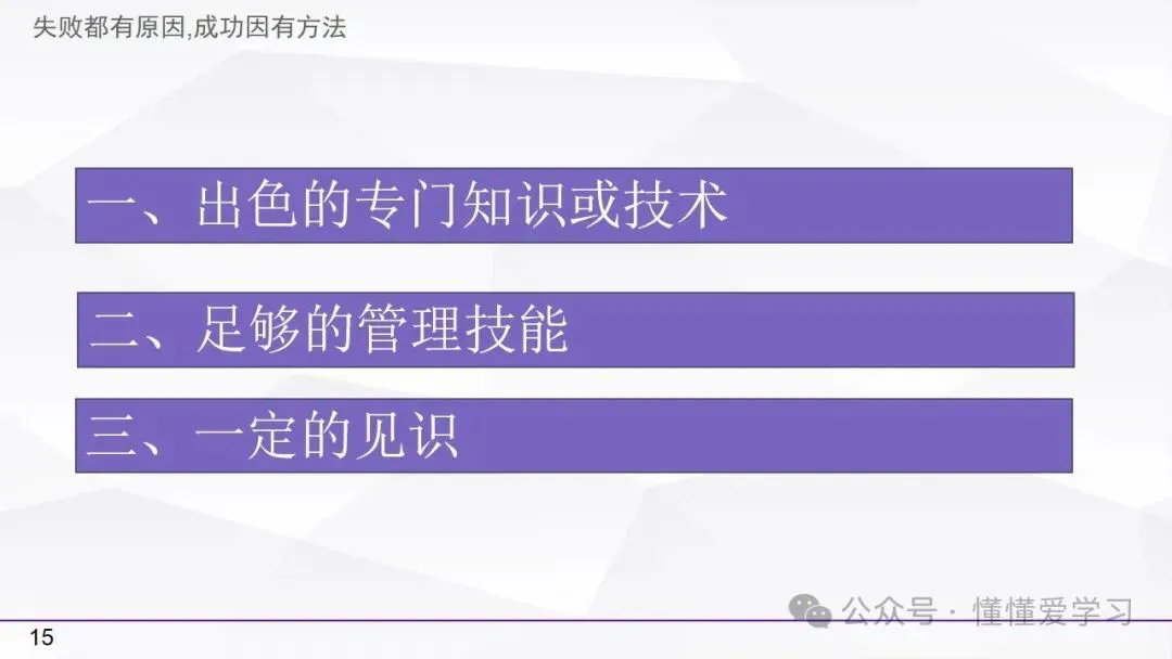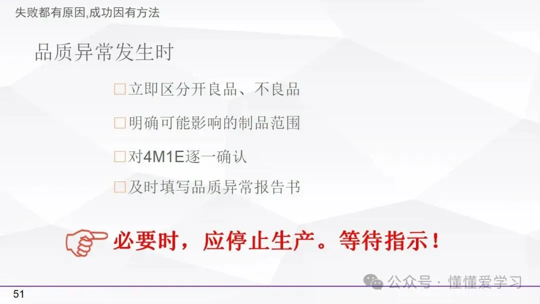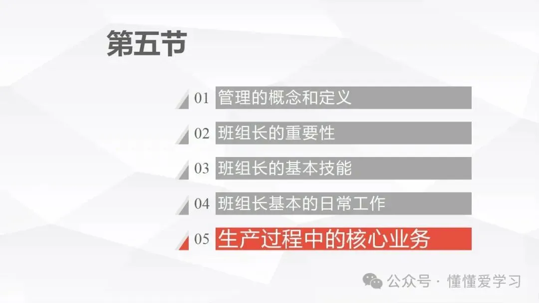 • 方法:熟悉并掌握管理过程(如PDCA循环),运用标准化和例外管理等工具来优化工作流程和提高生产效率。