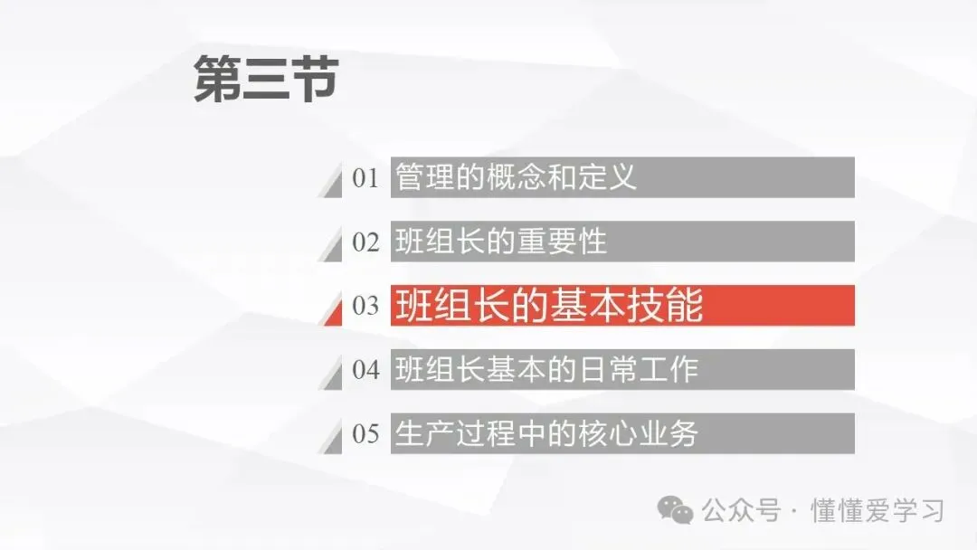 班组长作为生产和管理的前沿角色,需要具备一系列基本技能来有效履行职责。