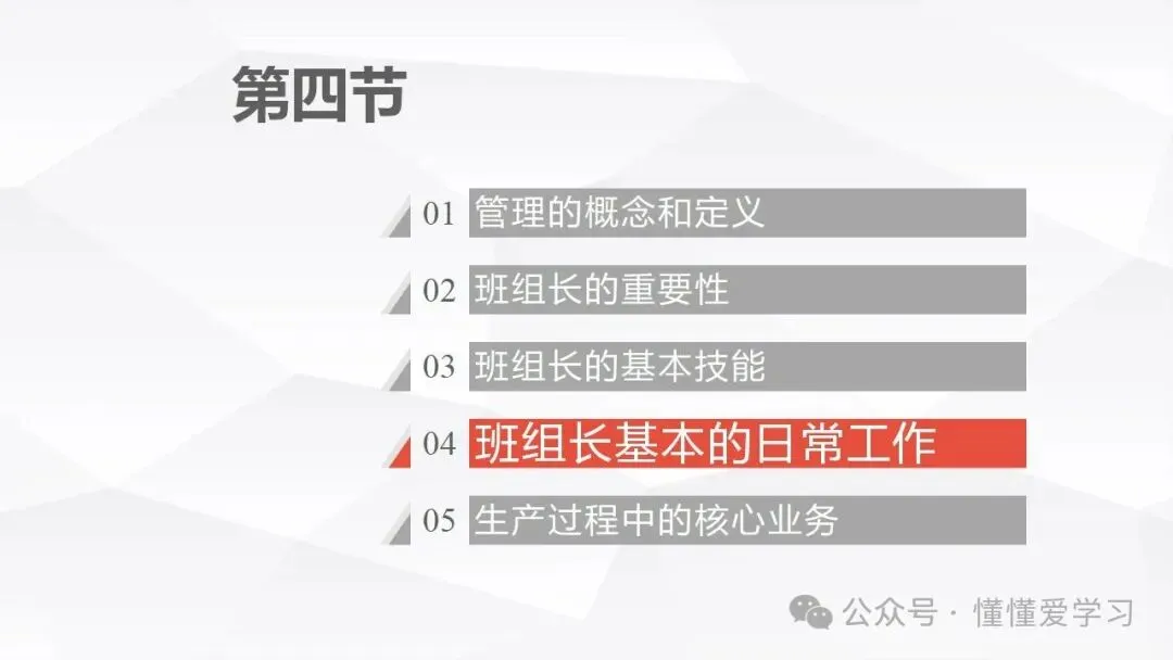 班组长的日常工作涉及多个方面,包括现场管理、日常管理和生产安排等。