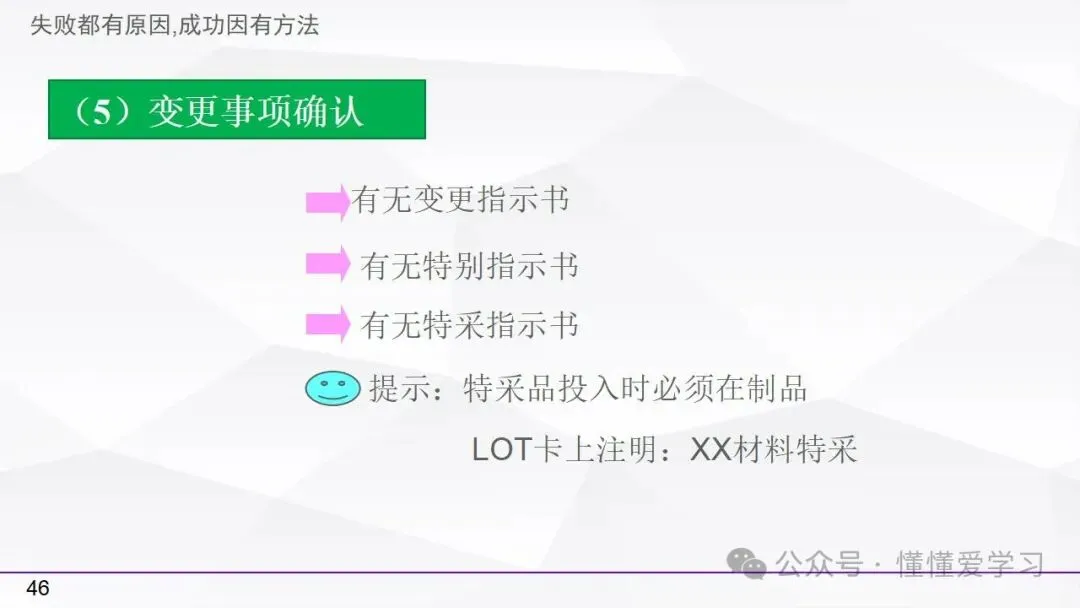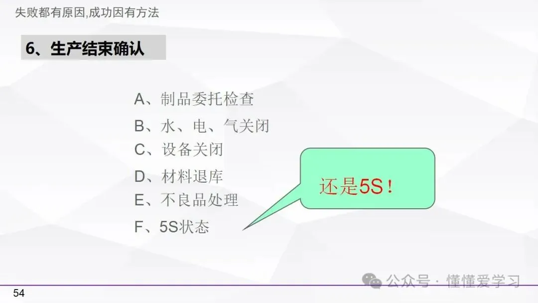 • 生产结束确认:进行制品检查、资源关闭、5S状态确认、材料退库以及不良品处理等工作,确保生产结束后的各项工作有序进行。