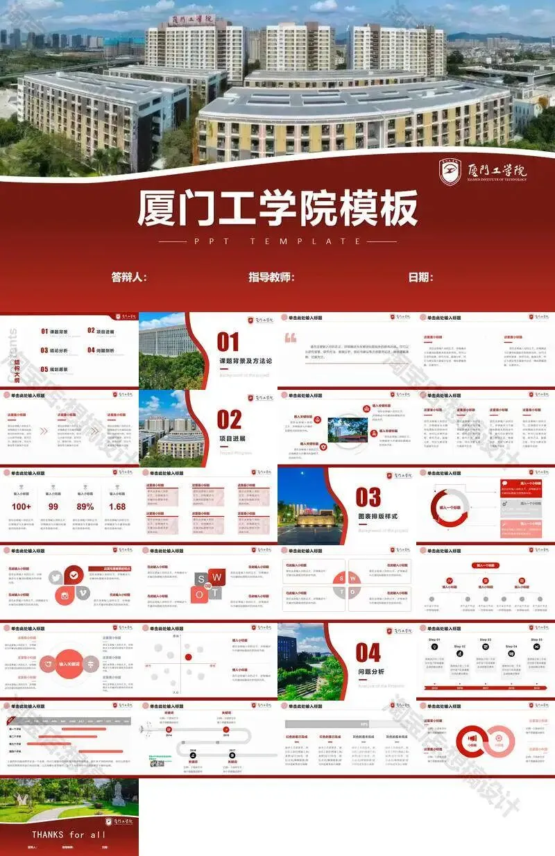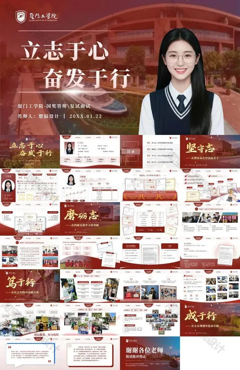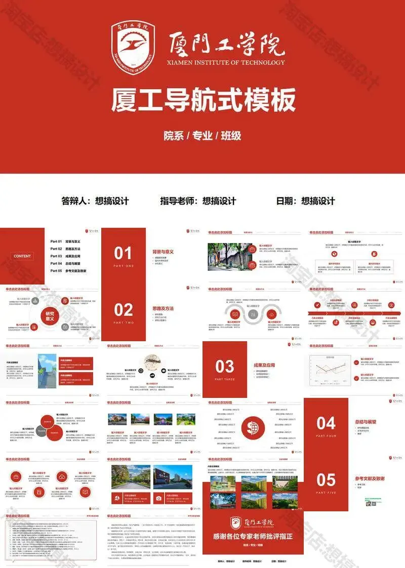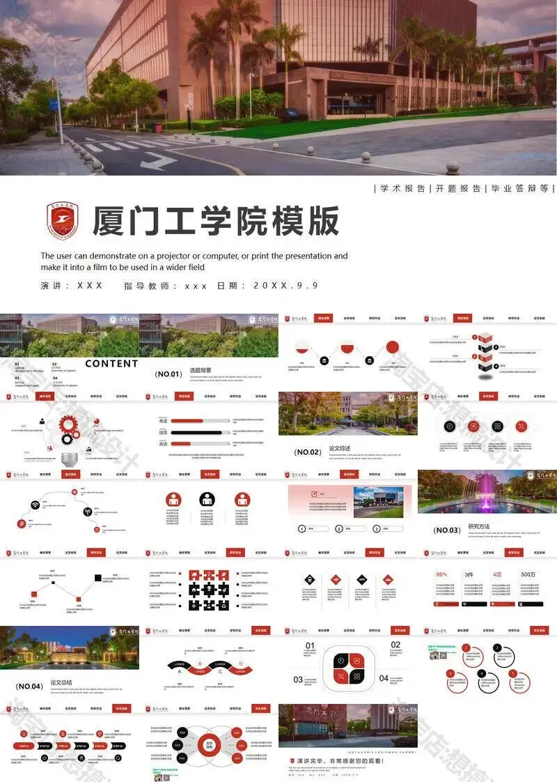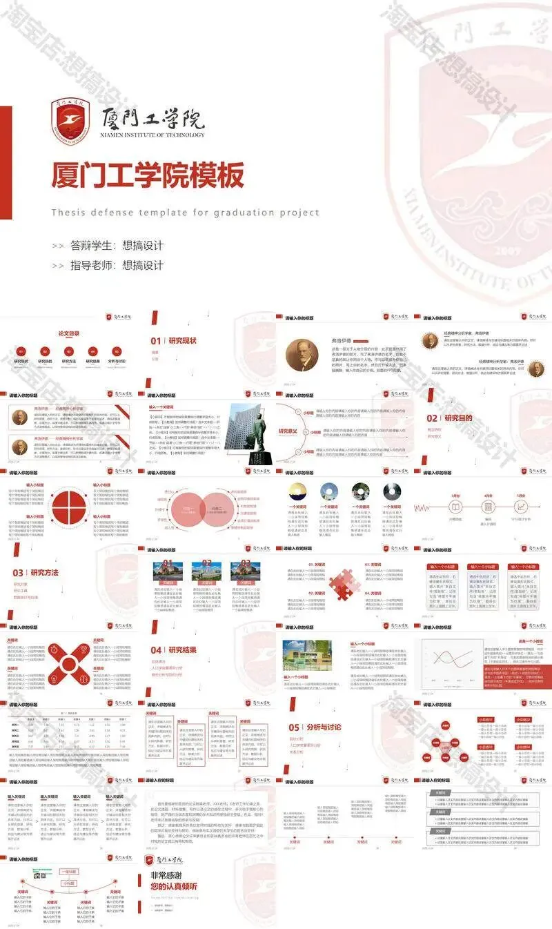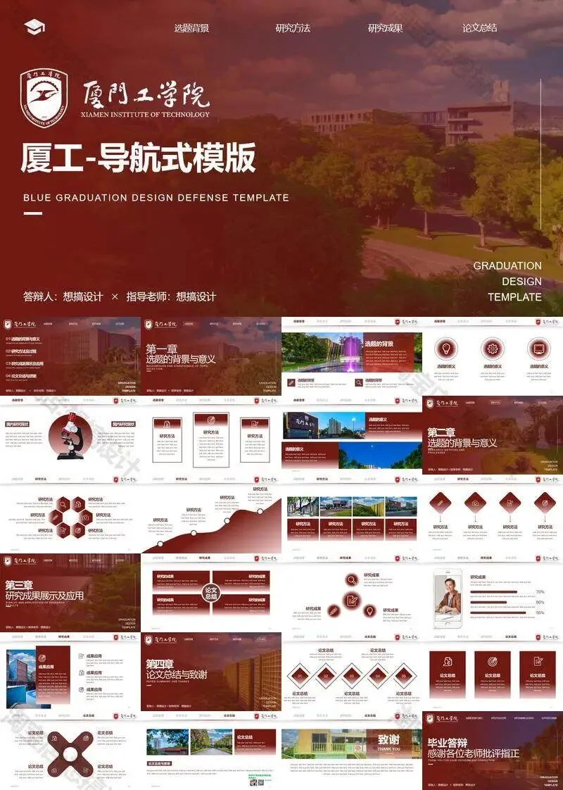 >厦门工学院毕业答辩PPT模板汇报幻灯片课件总结大学生作品集