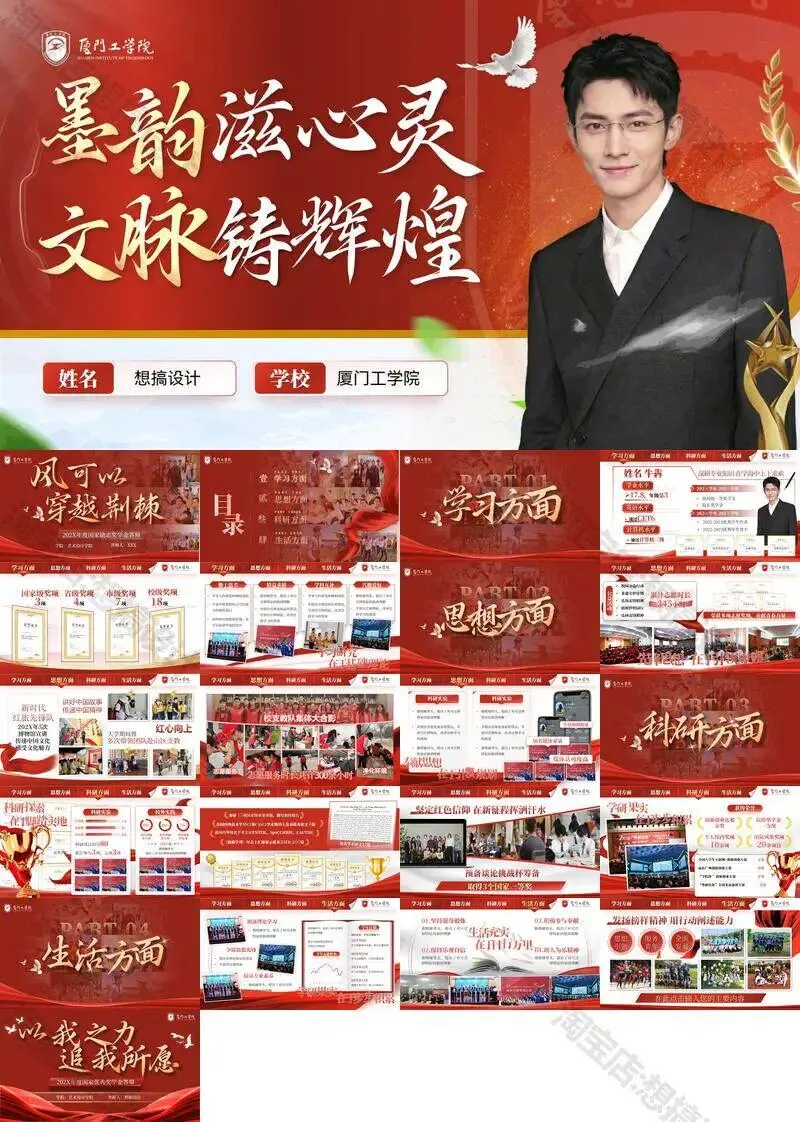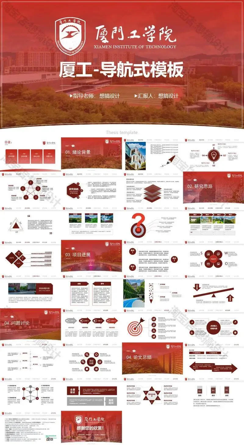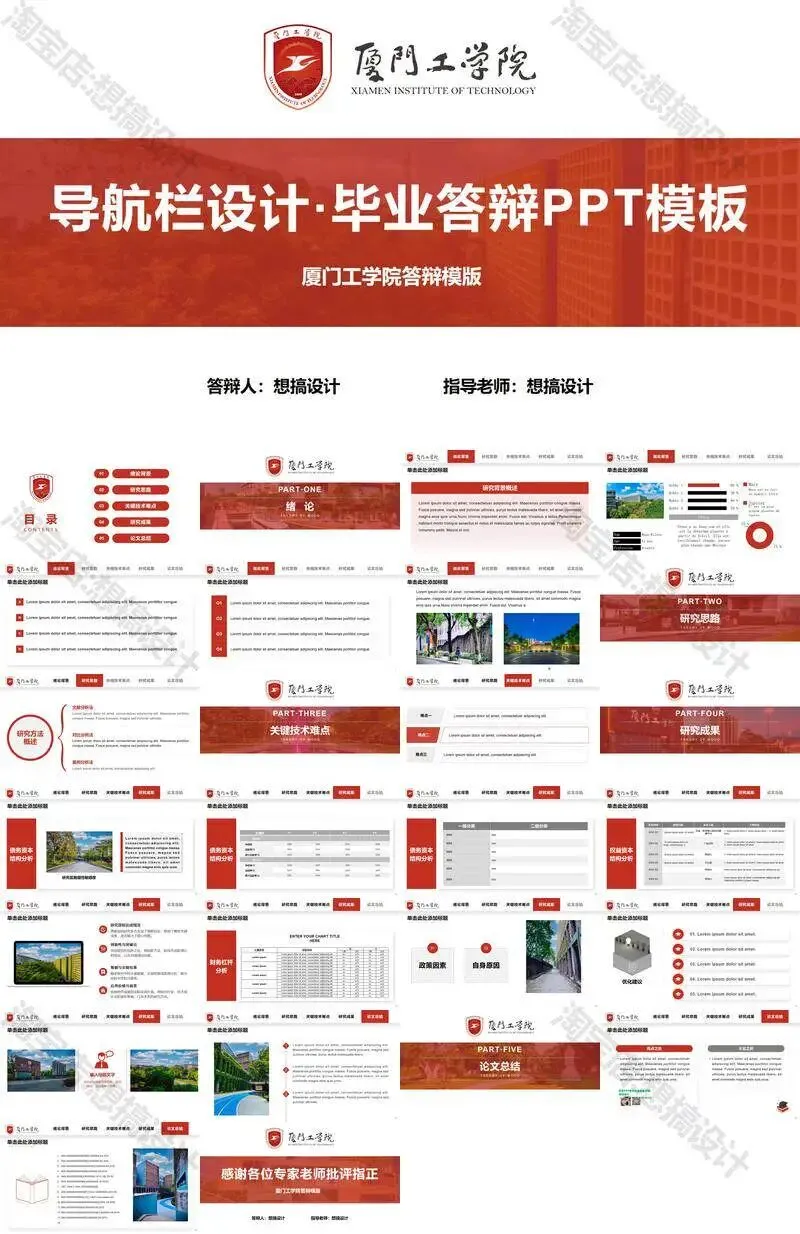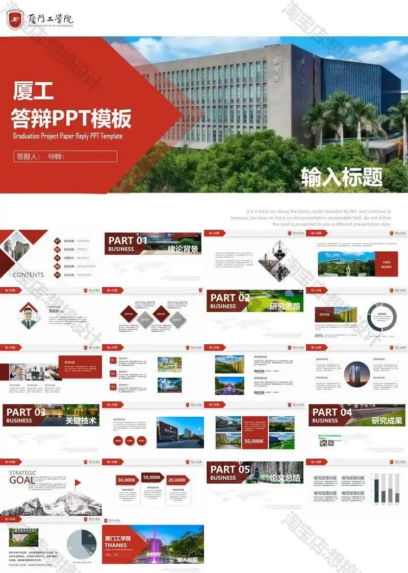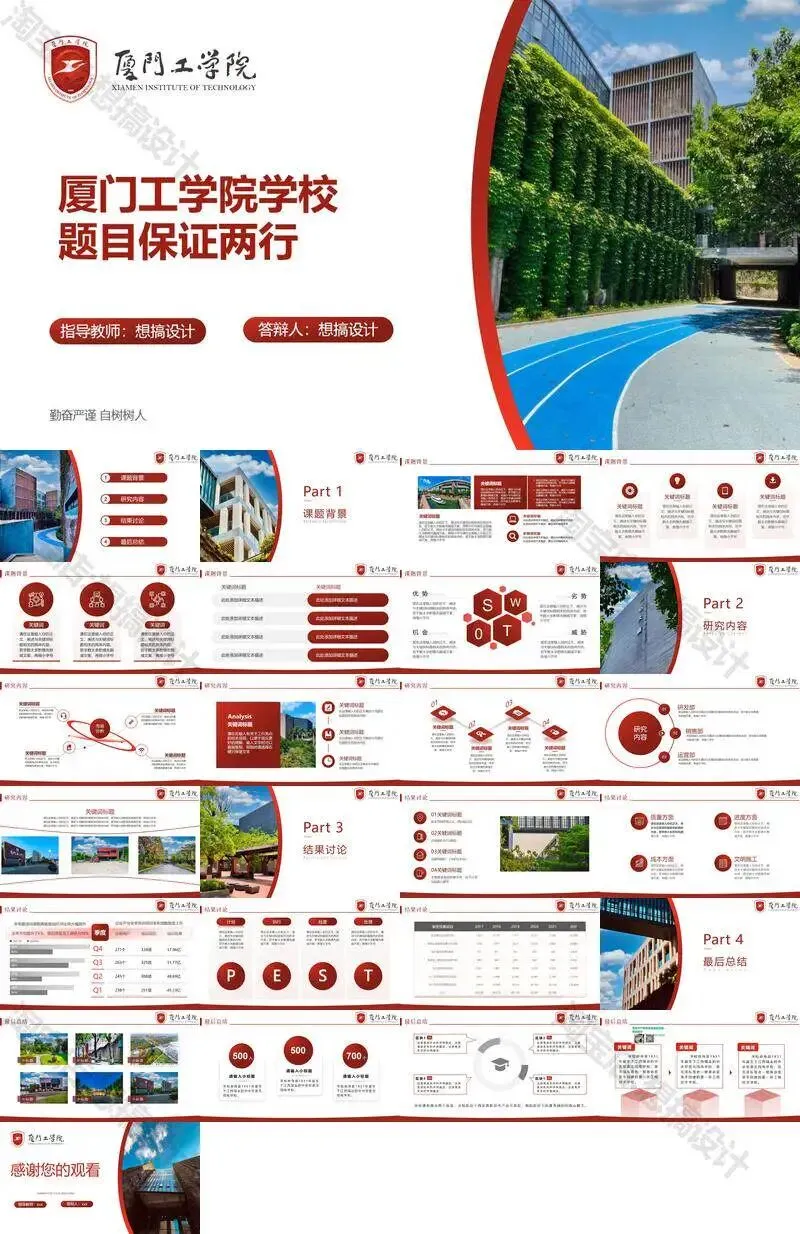>厦门工学院毕业答辩PPT模板汇报幻灯片课件总结大学生作品集