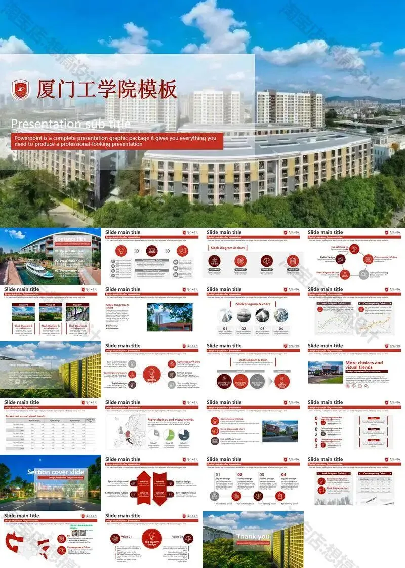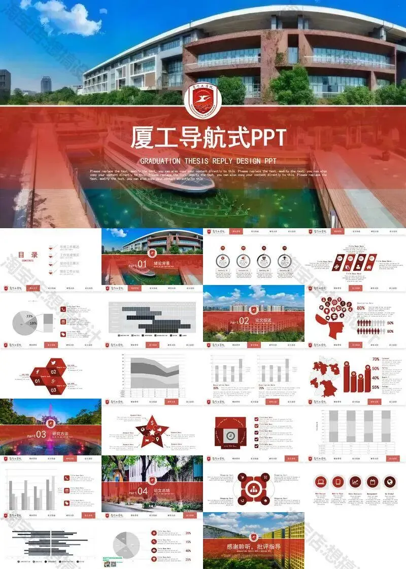 厦门工学院毕业答辩PPT模板汇报幻灯片课件总结大学生作品集