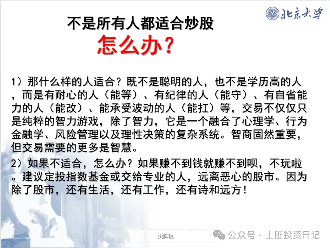 - 赚钱逻辑:短期交易是零和博弈(有人赚就有人亏),长期持有指数是正和(分享经济增长红利)