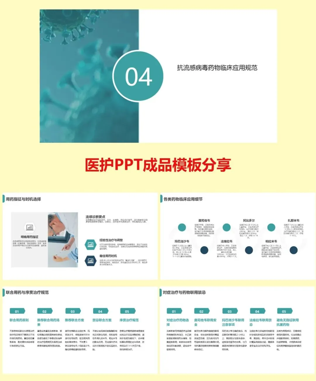 第四,临床应用规范。发病 48 小时内是黄金窗,仅对流感有效,不用于普通感冒。奥司他韦适用最广;玛巴洛沙韦单次服药;帕拉米韦静脉给药;法维拉韦可用于耐药或重症;扎那米韦为吸入制剂。严禁同类药联用,避免滥用抗菌药。