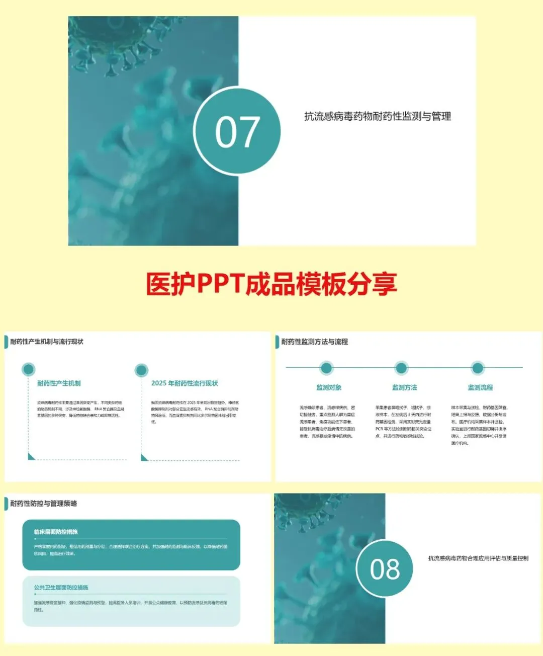 第七,耐药管理。耐药源于基因突变,需按流感中心数据选药。规范足量足疗程、不滥用,是降低耐药的关键。