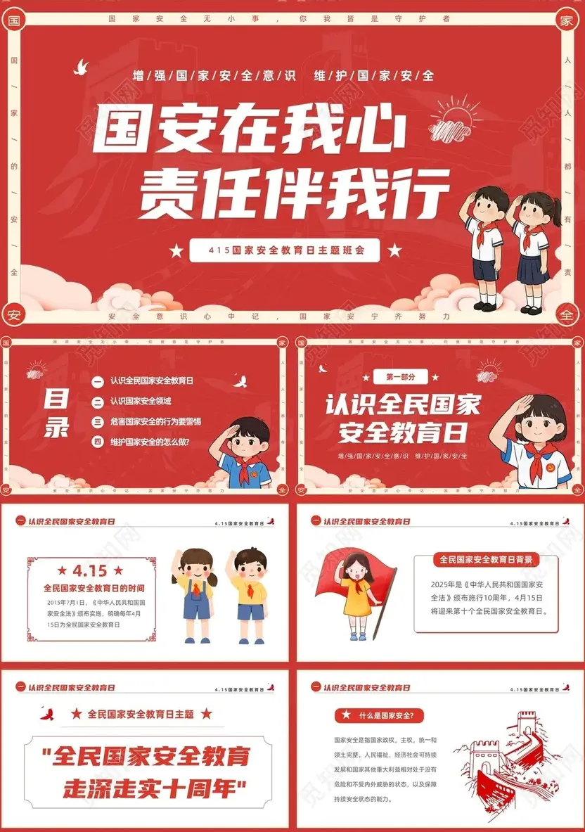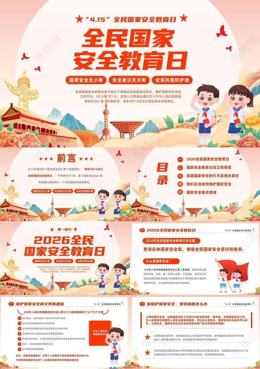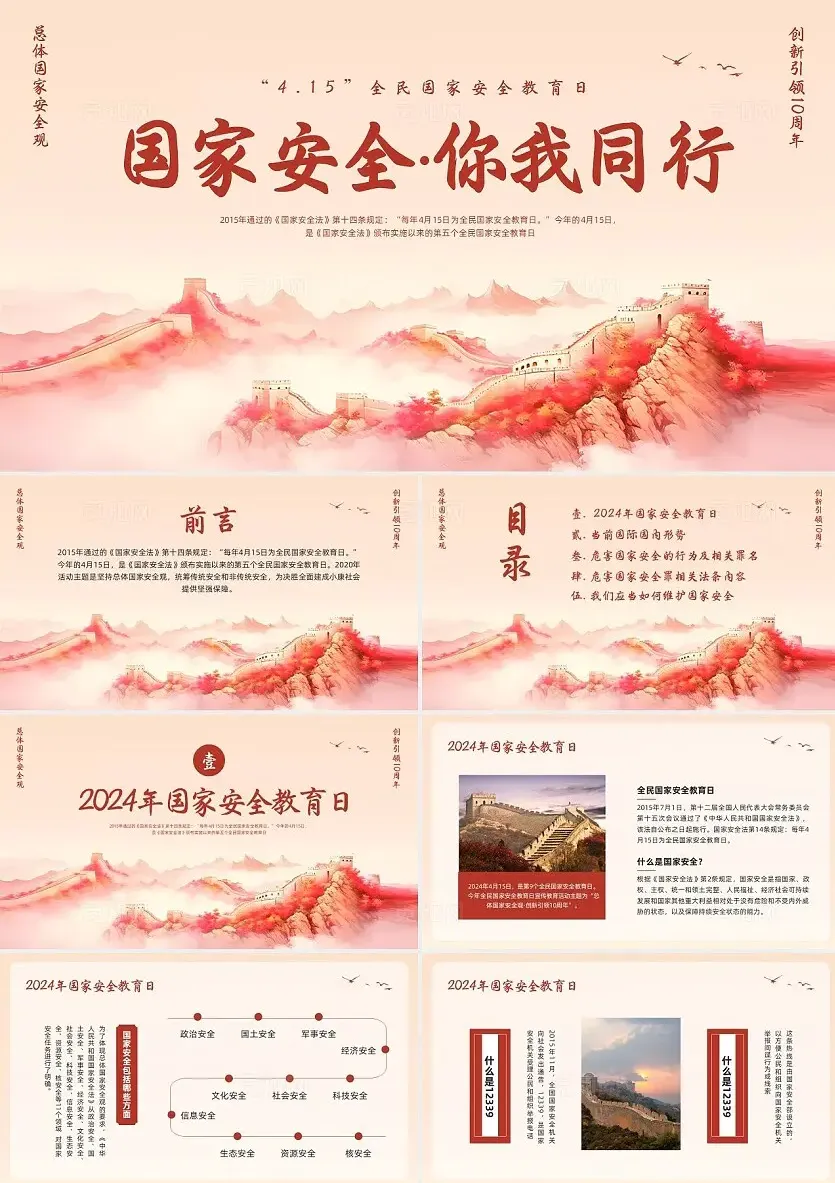 今天为大家整理了10 套全民国家安全教育日主题 PPT 模板,适用于宣传教育、主题讲座、班会课件等多种场景,直接可用!