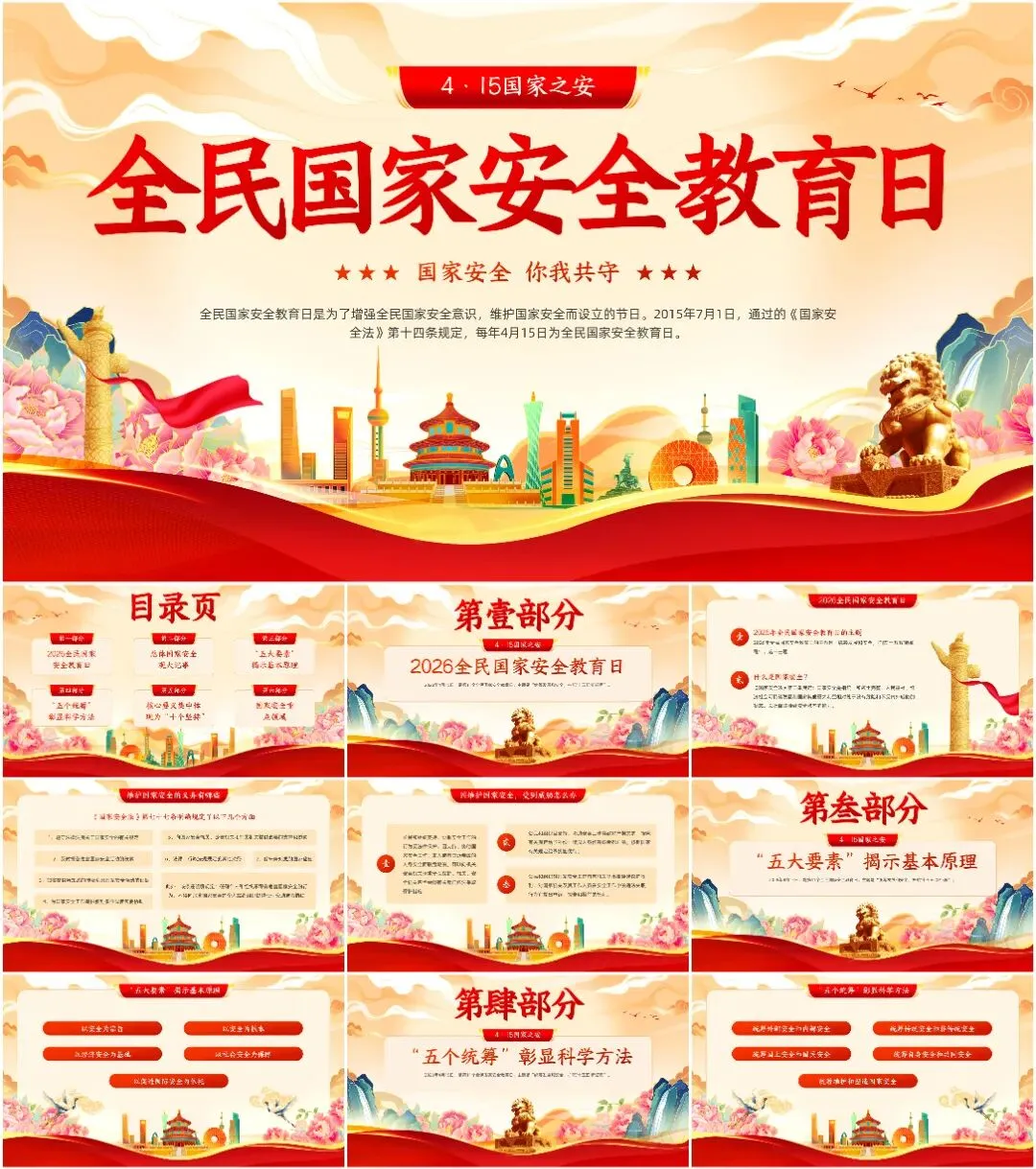 大家好,我是派掌门,欢迎各位小派!今天给大家带来最新27套高质量全民国家安全教育日专题PPT课件!