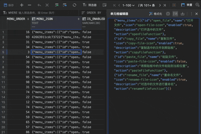 压缩存储:编辑完成后,SQLark 提供数据压缩功能,可一键去除空格、换行符等格式,将数据压缩为单行存储,满足应用程序传输和数据库存储需求。