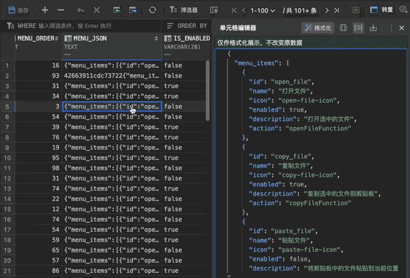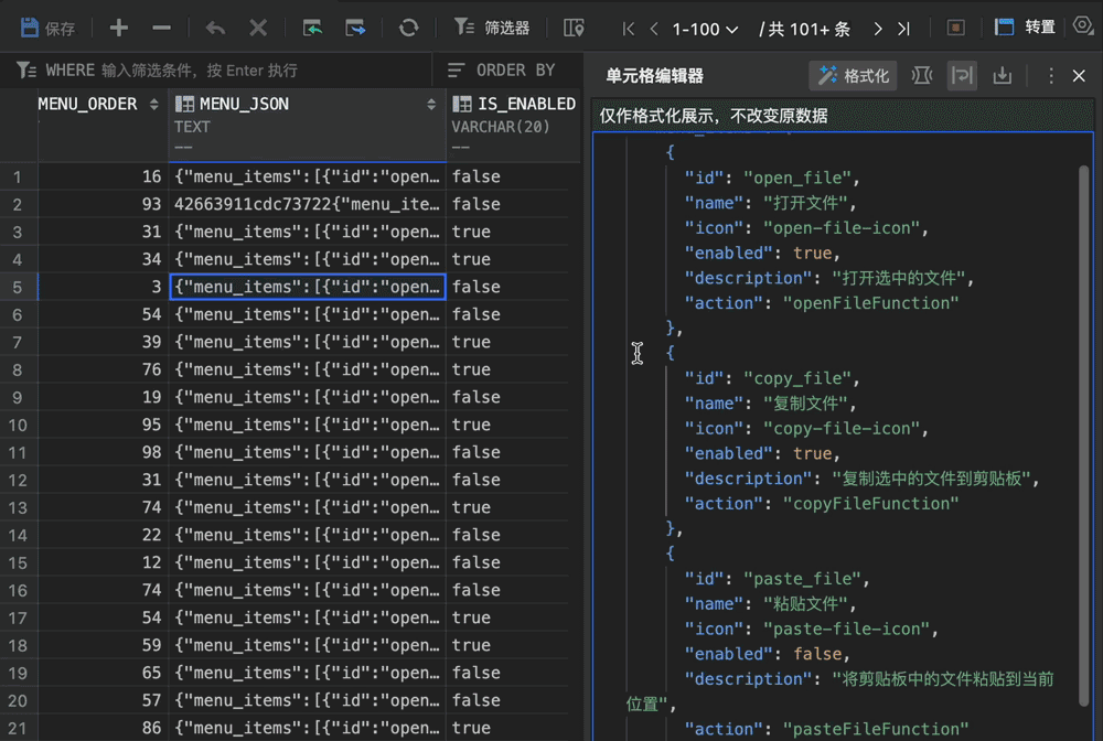 从生产环境查询出的 JSON/XML 内容,通常采用压缩(去格式化)方式存储,导致文本压缩成一团、不易阅读;如需修改某个参数,稍有不慎就会格式错误,还得复制到外部编辑器处理。那么 SQLark 是如何解决呢?