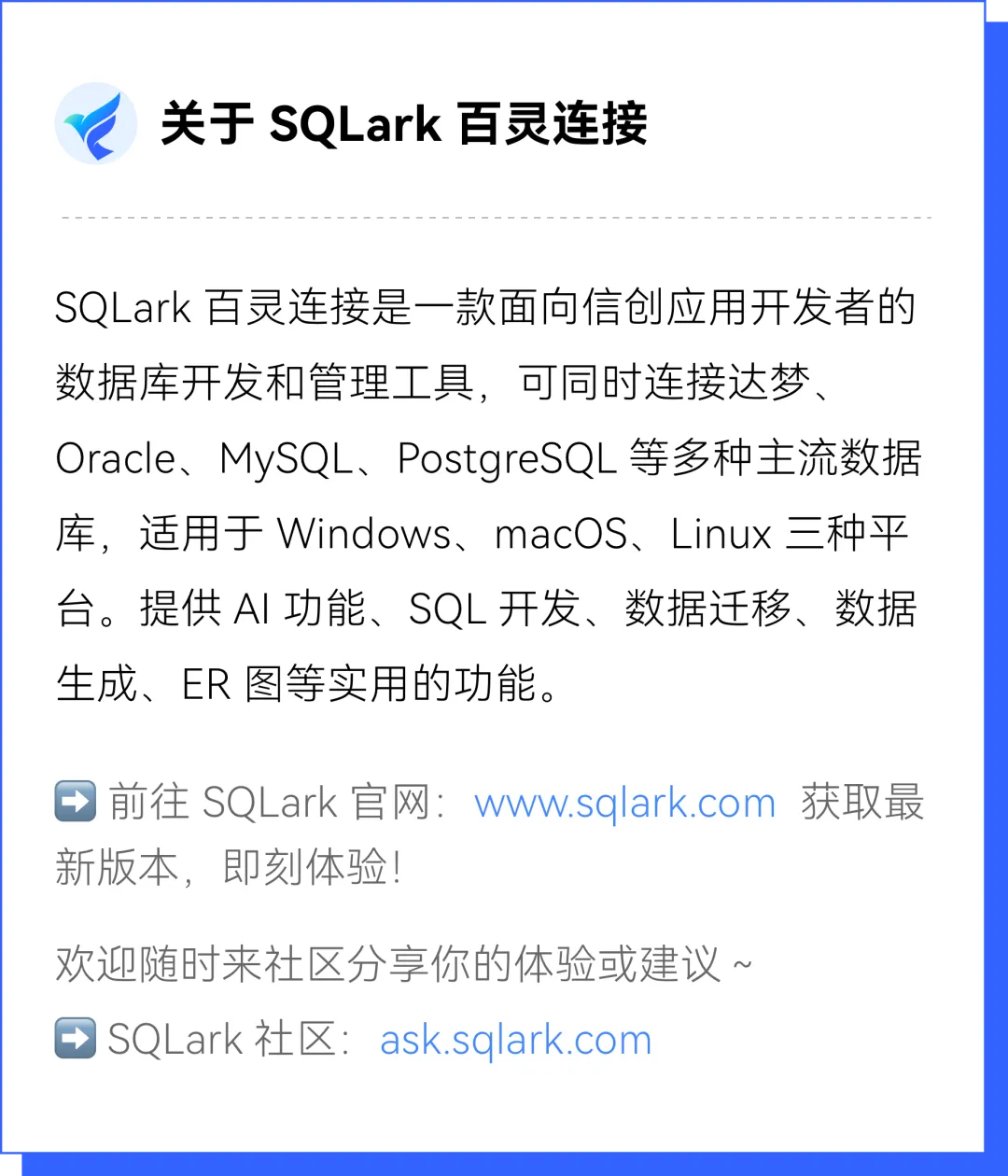👉 前往 SQLark 官网:www.sqlark.com下载最新 V3.9 版。