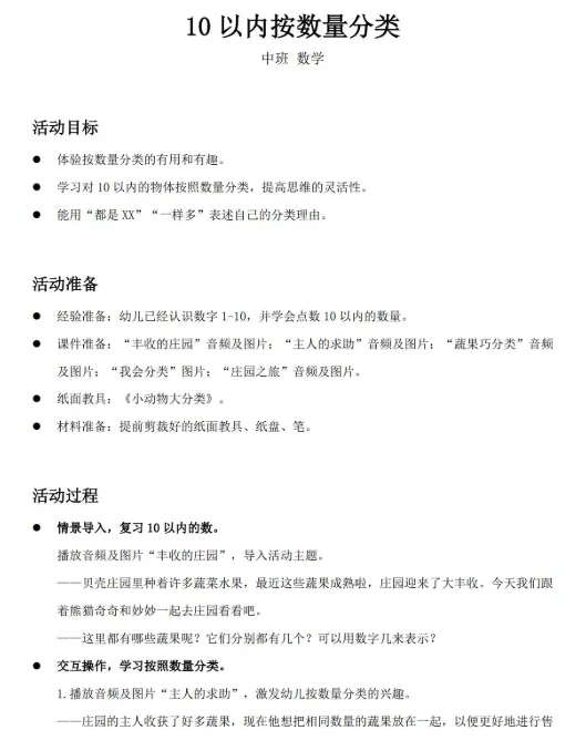 中班&数学——《10以内按数量分类》PPT+教案+纸面教具分享